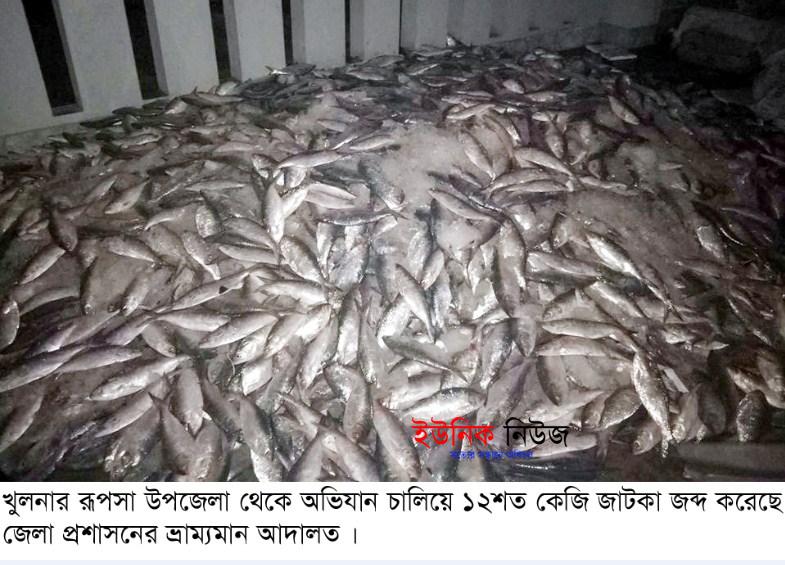 নির্বাহী ম্যাজিস্ট্রেট মোঃ আল মামুন জানান, জেলা প্রশাসক মো. আমিন উল আহসান এর তত্ত্বাবধানে রূপসা উপজেলাধীন রূপসা ব্রীজ সংলগ্ন এলাকায় বুধবার মধ্যরাতে কোস্টগার্ড ও উপজেলা মৎস্য দপ্তরের সহায়তায় মোবাইল কোর্ট পরিচালনা করা হয়। এসময় ৫৩টি ককসিটে মোড়ানো কার্টুনে আনুমানিক ৩২শ’ কেজি ইলিশ মাছের মধ্যে প্রায় ১২ শত কেজি জাটকা জব্দ করা হয়। জব্দকৃত জাটকা খুলনা মহানগরী ও রূপসা উপজেলার এতিমখানা, সমাজসেবা কর্তৃক পরিচালিত প্রতিষ্ঠানে বিতরণ করা হয়। এছাড়া ৪ জনকে ২০ হাজার টাকা জরিমানা করা হয়। অভিযানটি বৃহস্পতিবার ভোররাত সাড়ে ৩টা পর্যন্ত পরিচালিত হয়।
