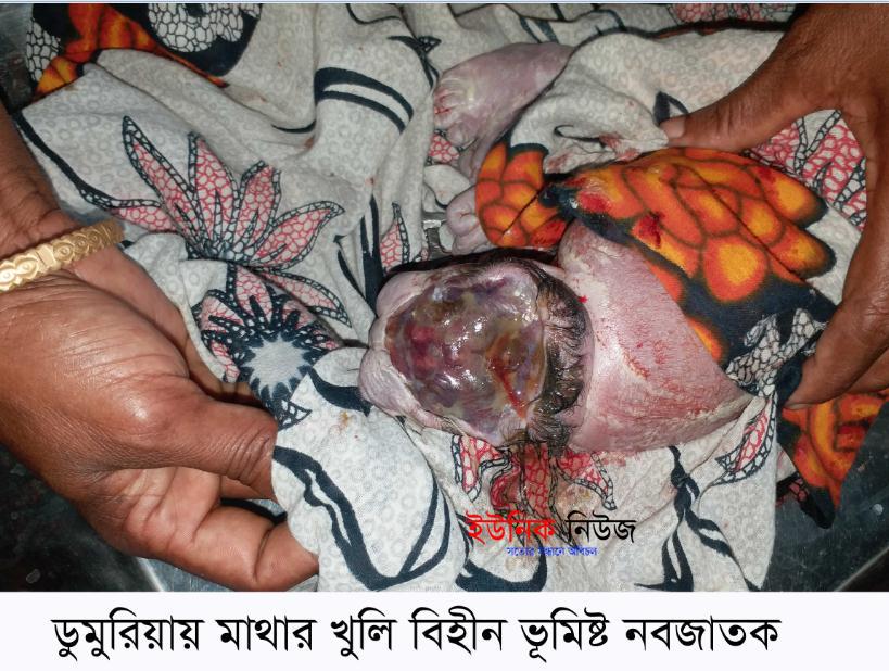 ডুমুরিয়া(খুলনা)প্রতিনিধি: খুলনার ডুমুরিয়া জনতা হাসপাতালে শুক্রবার সকালে মাথার খুলি বিহীন জীবিত নবজাতক শিশু ভূমিষ্ঠ হয়। সিজারিয়ান অপারেশনের মাধ্যমে জীবিত অব¯হায় ভূমিষ্ঠ হলেও ঘন্টা খানেক পরে শিশুটি মারা যায়। রোগির স্বজন ও হাসপাতাল সূত্রে জানা গেছে ডুমুরিয়া উপজেলার কুকিয়া গ্রামের কৃষক হাফিজুর রহমানের স্ত্রী হেনা বেগম (২২) ৮ মাস আগে প্রথম সন্তান সম্ভাবা হন। অজ্ঞতা বশত গত ৮ মাসেও গর্ভবতী স্ত্রীকে কোন ডাক্তার দেখাননি তারা। সম্প্রতি হেনা বেগমের শারীরিক সমস্যা দেখা দিলে গত ২৪ মার্চ যশোর জেলার কেশবপুরে একটি ডায়াগনিষ্ট সেন্টারে তার আল্ট্রা সনোগ্রাম করানো হয়। এতে রিপোর্টে তার বাচ্চার মাথার খুলি নেই বলে রিপোর্ট পাওয়া যায়। বিষয়টি হাফিজুরের পরিবারের কাছে বিশ্বাস যোগ্যে মনে না হওয়ায় তার গত ২৬ মার্চ তারিখে খুলনার একটি ডায়গনিষ্ট সেন্টার আবারও আলাট্রাসনোগ্রাম করালে সেখান থেকেও একই রিপোর্ট পাওয়া যায়। এরপর তারা গত বুধবার বিষয়টি নিয়ে ডুমুরিয়া জনতা হাসপাতাল কর্তৃপক্ষের সাথে যোগাযোগ করে সিজারিয়ান অপারেশনের সিদ্ধান্ত নেন। এ বিষয়ে জানতে চাইলে হাফিজুর রহমান জানান, ভূমিষ্ট হওয়া কন্যা শিশুটি আমাদের দ¤পতির প্রথম বাচ্চা। সবই আমাদের নসিব। কি আর বলবো। তবে তার স্ত্রীর শারীরিক অব¯হা ভাল আছে বলে তিনি জানান। জনতা হাসপাতের মালিক জি,এম জুলফিকার আলী (ভুট্রো জানান, আমরা রোগির দুই দফা আল্ট্রাসনোগ্রাম রিপোর্টে বাচ্চার মাথার খুলি বিহীন দেখে অপারেশন করতে প্রথমে রাজি ছিলাম না। কিন্তু রোগির স্বজন ও তার এলাকার একজন জনপ্রতিনিধির অনুরোধ ও সম্মতিতে খুলনা শহর থেকে বিশেষজ্ঞ ডাক্তার এনে সিজারিয়ান অপারেশন করার ব্যব¯হা করি। শিশুটি ভূমিষ্ট হওয়ার সময় জীবিত থাকলেও ঘন্টা খানেক পরে মারা যায়।