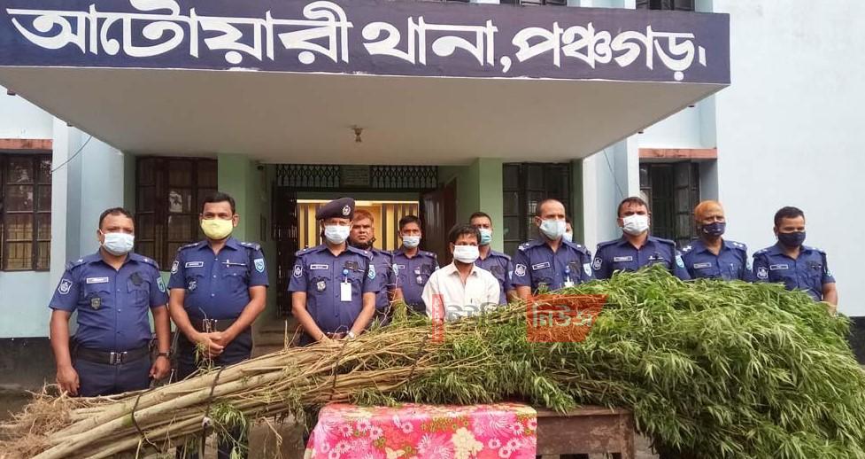মনোজ রায় হিরু, পঞ্চগড় : পঞ্চগড়ের আটোয়ারীতে গাঁজার গাছ সহ এক গাঁজা চাষীকে আটক করেছে পুলিশ। শনিবার (৩১ জুলাই) সন্ধায় বিশেষ অভিযান পরিচালনা করে উপজেলার বলরামপুর ইউনিয়নের লক্ষিদ্বার এলাকা থেকে মো: নুরুজ্জামান (৩৫) নামে গাঁজা চাষীকে আটক করে। এসময় তার বাড়ি থেকে ২১টি গাঁজার গাছ উদ্ধার করেছে পুলিশ। গোপন সংবাদের ভিত্ত্বিতে সাব ইনস্পেক্টর মো: মোকারম হোসেনের নেতৃত্বে থানা পুলিশের একটি দল এ অভিযার পরিচালনা করে। ওই দিন রাতেই ধৃত গাঁজা চাষীর নামে ২০১৮ সালের মাদকদ্রব্য নিয়ন্ত্রণ আইন ৩৬(১) এর ১৮(ক) ধারায় মামলা দায়ের করা হয়েছে এবং ১ আগষ্ট সকালে আদালতের মাধ্যমে তাকে জেলে পাঠানো হয়েছে, এমনটি জানান আটোয়ারী থানার অফিসার ইনচার্জ মো: ইজার উদ্দীন। উল্লেখ্য, করোনা প্রাদুর্ভাব শুরু থেকে উপজেলায় করোনা সংক্রমন ও বিস্তার রোধে পুলিশের অগ্রনী ভুমিকার পাশাপাশি এলাকার আইনশৃংখলা পরিস্থিতি স্বাভাবিক রাখতে এবং মাদক প্রতিরোধে স্থানীয় পুলিশ বিভাগ সর্বদা অঙ্গীকারবদ্ধ।