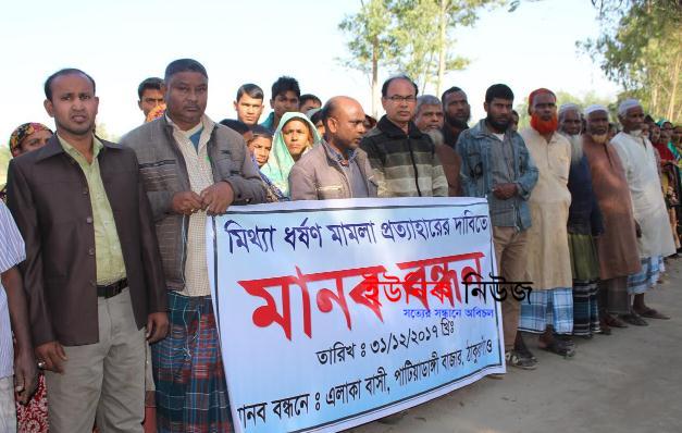 জয় মহন্ত অলক, ঠাকুরগাঁও : ঠাকুরগাঁও সদর উপজেলার বড়গাঁও ইউনিয়নের মোলানখুড়ি গ্রামে মিথ্যা ধর্ষণ মামলা প্রত্যাহারের দাবিতে মানব বন্ধন করেছেনএলাকাবাসী।
