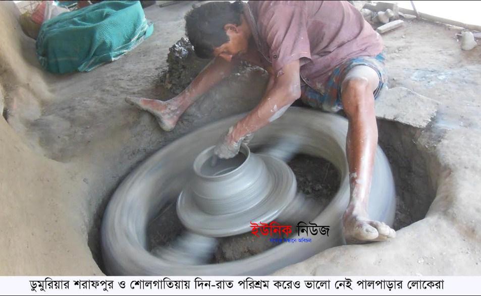 জানাযায় উপজেলার ১৪ টি ইউনিয়নে যেখানে রয়েছে শতশত পাল পরিবারের হাজার হাজার লোকের বসবাস।মাটির তৈরী হাড়ি,পাতিল,কলসি সহ বিভিন্ন সামগ্রী তৈরী ও বিক্রি তাদের পেষা।পূর্ব পূরুষের এ পেষা ধরে জীবন যুদ্ধে সফলতা অর্জন করে আসছে তারা।তাদের চোখে মুখে ছিলসোঁনলী স্বপ্ন।কিন্তু সে গুড়ে এখন বালি।নুন আনতে পান্তা ফুরাচ্ছে তদের।এমনটি জানিয়েছেন শরাফপুর ও শোলগাতিয়া পালপাড়ার নারায়ন পাল,বিল্লু পাল,সঞ্জয় পাল,পরিতোষ পাল,সুচিত্রা পাল সহ অনেকে।তারা জানান একসময় মাটির তৈরী হাড়ি,পাতিল,কলসি সহ বিভিন্ন সামগ্রী তৈরী ও বিক্রির প্রতিযোগিতা ছিল।মৃত শিল্প তৈরী করে গ্রামে গ্রামে আবার কখনো হাট বাজারে বিক্রি করে লাভবান হতাম।মিটাতাম সংসারের চাহিদা,দেখতাম সোঁনালী স্বপ্ন।কিন্তু এখন প্লাস্টিক ও এ্যনামেল‘র চাপে নেইআর প্রতিযোগিতা,হারিয়েছে সকল স্বপ্ন।তারা আরো জানান তাদের ছেলে মেয়েরা এখন আর এ কাজ শিখছেনা।খুজছে অন্য পেষা। কথা হয় ডুমুরিয়া সদরে শংকর ও প্রীতিষ পালের সাথে,তিনি জানান সদর পালপাড়া এখন আর পালপাড়া নেই।হারিয়ে গেছে সে সব ঐতিহ্য।এখন মুদি দোকানের পাসাপাসি দু‘একটি হাড়ি,পাতিল ক্রয় করে বিক্রি করি।যেখানে হাত দেবেন সেখানেই প্লাস্টিক ও এনামেলের ব্যবহার।আমাদের আদি পেশাটি ছিল খুবইকষ্টের কাজ,তবুও সে কাজের মাঝে ছিল এক অপূর্ব সুখ।পরিবারের সকলে মিলে সে সুখ ভাগাভাগি করে নিতাম।তিনি আরো বলেন এ পেশায় নেই সরকারি কোন সহায়তা,নেই লোন ও প্রশিক্ষনের ব্যবস্থা।প্রতিযোগিতা বাজারে টিকে থাকা অসম্ভব।বাধ্য হয়ে গুটিয়ে নিয়েছি আদি ও পূর্ব পূরুষের পেশা। বেছেনিতে হচ্ছে গুড়,মিষ্টি তৈরী সহ অন্যান্য পেশা। সরকারের সহযোগিত কামনা করেছেন তারা।