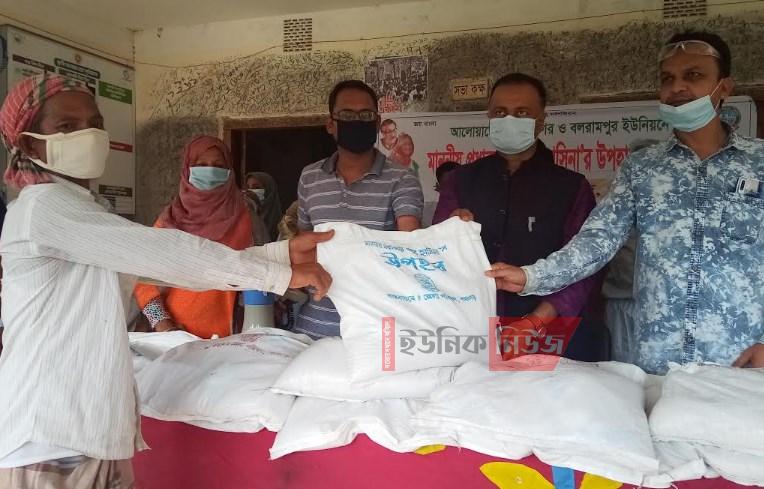 মনোজ রায় হিরু, আটোয়ারী : মাননীয় প্রধানমন্ত্রীর মানবিক সহায়তা কর্মসূচীর অংশ হিসেবে পঞ্চগড় জেলা পরিষদের চেয়ারম্যান আটোয়ারীতে সাত শতাধিক মানুষকে খাদ্য সহায়তার প্যাকেট পৌঁছে দিলেন। এ উপলক্ষে মঙ্গলবার (২জুন) বিকেলে যথাক্রমে রাধানগর, আলোয়াখোয়া ও বলরামপুর ইউনিয়ন পরিষদে সাড়ে তিন শত মানুষকে খাদ্য সহায়তা করা হয়। পঞ্চগড় জেলা পরিষদের চেয়ারম্যান ও জেলা আওয়ামীলীগের সাধারণ সম্পাদক আলহাজ্ব মোঃ আনোয়ার সাদাত সম্রাট প্রধান অতিথি হিসেবে উপস্থিত থেকে এলাকার কর্মহীন হয়ে পড়া অসহায় মানুষদের মাননীয় প্রধানমন্ত্রীর মানবিক সহায়তা ত্রাণের প্যাকেট তুলে দেন। এসময় জেলা পরিষদের প্যানেল চেয়ারম্যান মোঃ মাজেদুর রহমান বকুল, সদস্য মোছাঃ লুৎফা বেগম ও মোঃ মাসুদ করিম বিশেষ অতিথি হিসেবে উপস্থিত ছিলেন। অন্যান্যের মধ্যে রাধানগর ইউ’পি চেয়ারম্যান মোঃ আবু জাহেদ, বলরামপুর ইউ’পি চেয়ারম্যান বীরমুক্তিযোদ্ধা মোঃ সাইদুর রহমান, আলোয়াখোয়া ইউ’পি চেয়ারম্যান প্রদীপ কুমার রায় সহ সংশ্লিষ্ট ইউনিয়ন পরিষদের নির্বাচিত ইউ’পি সদসগণ উপস্থিত ছিলেন। এর আগে গত ৩১ মে উপজেলার মির্জাপুর, তোড়িয়া ও ধামোর ইউনিয়নের সাড়ে তিন শত মানুষকে প্রধানমন্ত্রীর মানবিক সহায়তার ত্রাণের প্যাকেট বিতরণ করা হয়। এছাড়াও উপজেলার প্রতিটি ইউনিয়ন পরিষদের চেয়ারম্যান ও সদস্যদের মাঝে জেলা পরিষদের পক্ষে শতাধিক পিপিই সরবরাহ করা হয়।