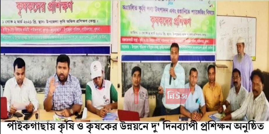 মোঃ আসাদুল ইসলাম, পাইকগাছা : পাইকগাছা উপজেলা কৃষি অধিদপ্তরের আয়োজনে পাইকগাছা কৃষি ও সেচ কমিটির বাস্তবায়নে উপজেলা পরিচালন ও উন্নয়ন প্রকল্প স্থানীয় সরকার বিভাগ জাপান ইন্টারন্যাশনাল কো-অপারেশন এজেন্সী জাইকার সহায়তায় সোমবার-মঙ্গলবার কৃষি ও কৃষকের উন্নয়নে অপ্রচলিত কৃষি পণ্য উৎপাদন এবং রপ্তানিতে প্যাকেজিং বিষয়ে দুই দিনব্যাপী প্রশিক্ষন অনুষ্ঠিত হয়েছে।
