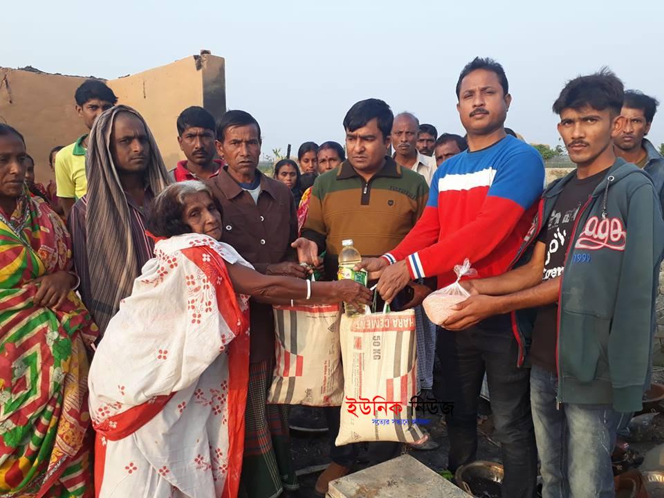 বটিয়াঘাটা প্রতিনিধিঃ ভয়াবহ অগ্নিকান্ডে ক্ষতিগ্রস্থ বটিয়াঘাটার হালিয়াবাজার এলাকার পরিতোষ মন্ডলের মানবেতর জীবন যাপনের খবর পেয়ে আত্মমানবতার সেবায় এগিয়ে এলেন উপজেলা নির্বাহী কর্মকর্তা দেবাশীষ চৌধুরী। উপজেলা প্রশাসন ও ভান্ডারকোট ইউনিয়ন পরিষদের উদ্যোগে শনিবার বিকালে শীতবস্ত্র, চাউল, ডাউল, নগদ অর্থ ও নিত্য প্রয়োজনীয় পন্য সামগ্রী নিয়ে খোদ নির্বাহী কর্মকর্তা সহায় সম্বলহীন পরিতোষের বাড়িতে হাজির হন। এ সময় তার সাথে অন্যান্যের মধ্যে উপস্থিত ছিলেন ইউপি চেয়ারম্যান ইসমাইল হোসেন মোল্লা বাবু সহ ইউনিয়ন পরিষদের সদস্যবৃন্দ ও গন্যমান্য ব্যক্তিবর্গ। উল্লেখ্য গত বৃহস্পতিবার দিবাগত মধ্যরাত্রে বসতঘরে আগুন লেগে সম্পূর্ন ভষ্মীভূত হয়। সেই থেকে সব হারিয়ে খোলা আকাশের নিচে সে ও তার পরিবার পরিজন মানবেতর জীবন যাপন করছিলো। গত ১০/১২ দিন পূর্বে তার একটি মেয়ে দীর্ঘদিন যাবত দূরারোগ্য ব্যাধি ক্যান্সারে আক্রান্ত হয়ে মৃত্যুবরণ করে।