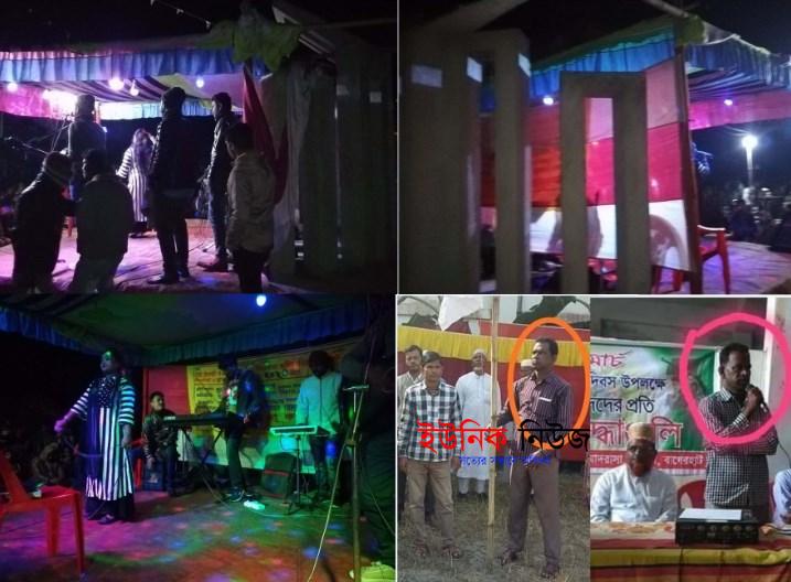 শহীদ মিনারে জুতা পায়ে গান-বাজনা ও নৃত্য পরিবেশনের বিষয়ে জানতে চাইলে মেম্বর মতিউর রহমান মোড়লের কাছে জানতে চাইলে তিনি বলেন, অনুষ্ঠান চলবে, আপনারা যা পারেন তাই করেন’।