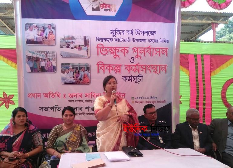 মনোজ রায় হিরু, আটোয়ারী (পঞ্চগড়) : মুজিব বর্ষ উপলক্ষে ভিক্ষুক পুর্নবাসন ও বিকল্প কর্মসংস্থান কর্মসূচীর আওতায় ৪৯ জন ভিক্ষুককে পুর্নবাসন ও বিকল্প কর্মসংস্থান প্রদানের মধ্য দিয়ে পঞ্চগড়ের আটোয়ারীকে ভিক্ষুক মুক্ত আটোয়ারী উপজেলা ঘোষনা করা হয়েছে। এ উপলক্ষে মঙ্গলবার দুপুরে উপজেলা পরিষদ ক্যাম্পাসে অনুষ্ঠিত উপজেলা নির্বাহী অফিসার শারমিন সুলতানা’র সভাপতিত্বে আলোচনা সভায় প্রধান অতিথির বক্তব্য রাখেন পঞ্চগড় জেলা প্রশাসক সাবিনা ইয়াসমিন।