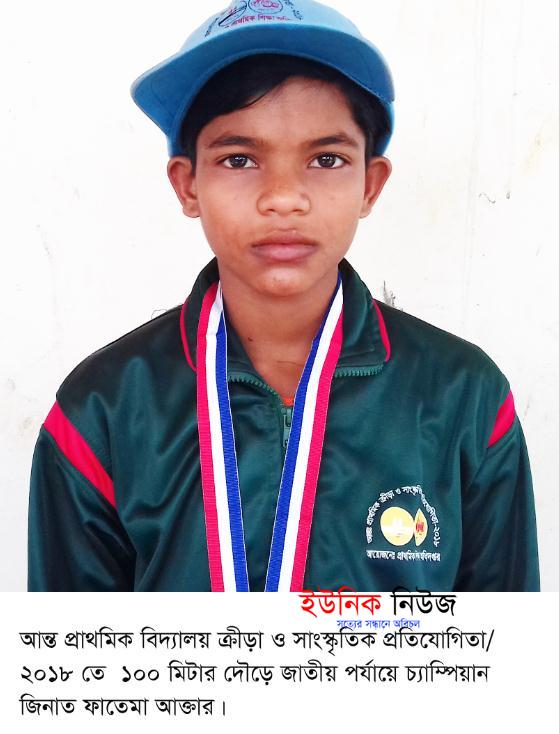ইমতিয়াজ উদ্দিন, কয়রা : আন্তঃ প্রাথমিক বিদ্যালয় ক্রীড়া ও সাংস্কৃতিক প্রতিযোগিতা-২০১৮ তে ১০০ মিটার দৌড়ে জাতীয় পর্যায়ে চ্যাম্পিয়ন হওয়ার গৌরব অর্জন করেছে কয়রা উপজেলার জিনাত ফাতেমা আক্তার (১১)। তার কৃতিত্ত্বের স্বীকৃতি হিসেবে গণপ্রজাতন্ত্রী বাংলাদেশ সরকারের প্রাথমিক ও গণশিক্ষা মন্ত্রী মোস্তাফিজুর রহমান সিজার তাকে সার্টিফিকেট ও পুরস্কার প্রদান করেন। কয়রা উপজেলার ঐতিহ্যবাহী এস ইসলামপুর সরকারী প্রাথমিক বিদ্যালয়ের পঞ্চম শ্রেণির ছাত্রী জিনাত ফাতেমা আক্তার বাগালী ইউনিয়নের ইসলামপুর নিবাসী মোঃ মফিজুল ইসলাম মোল্যা ও আয়েশা বেগমের কনিষ্ঠ কন্যা। সে এবারের ক্রীড়া ও সাংস্কৃতিক প্রতিযোগিতায় জাতীয় পর্যায়ে চাম্পিয়ন হয়ে কয়রা উপজেলা, এস ইসলামপুর সরকারী প্রাথমিক বিদ্যালয় ও পিতা মাতার মুখ উজ্জ্বল করায় উপজেলা প্রাথমিক শিক্ষা অফিসার ও সহকারী শিক্ষা অফিসারদের পক্ষ থেকে পুরস্কৃত করা হয় ও ধন্যবাদ জানানো হয়। ফাতেমা ভবিষ্যতে একজন ক্রীড়াবিদ হতে চায়। সে ও তার পরিবারের পক্ষ থেকে তার ভবিষ্যৎ সফলতার জন্য সকলের নিকট দোয়া কামনা করা হয়েছে।