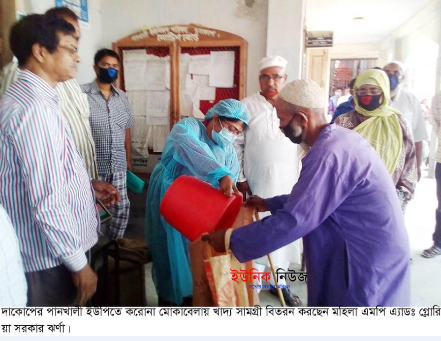 এদিকে ৯টি ইউনিয়ন এবং ১টি পৌরসভা নিয়ে প্রায় ৫০ হাজার পরিবার দাকোপ উপজেলায়। করোনা পরিস্থিতির সৃষ্টি থেকে অদ্যবধী সরকারীভাবে পাওয়া ৫০ টন চাল এবং নগত ৭৫ হাজার টাকার মালামাল ৫১০০ পরিবারের মাঝে বিতরন করা হয়েছে। উপজেলা প্রকল্প বাস্তবায়ন কর্মকর্তা শেখ আব্দুল কাদের জানায়, প্রাথমিকভাবে ২০ হাজার ৭৯৯ পরিবারের জন্য সহায়তা চাওয়া হয়েছিল। যার মধ্যে প্রাথমিকভাবে প্রাপ্ত সহায়তা ৫১০০ পরিবারে বিতরন করা হয়েছে। তবে পূর্বের চাহিদা তালিকাসহ মোট ২৭ হাজার পরিবারের জন্য ত্রান সহায়তা চেয়ে নতুন করে আবেদন করা হচ্ছে। উপজেলা স্বাস্থ্য কর্মকর্তা ডাঃ মোজাম্মেল হক নিজামীর সাথে কথা বলে জানা যায়, শনিবার পর্যন্ত উপজেলায় মোট কোয়ারেন্টাইনে আছে ১৫১ জন। এরমধ্যে বিদেশ ফেরত ২৮ বাকীরা দেশের অভ্যান্তরীন বিভিন্ন জায়গা থেকে আগত। দাকোপের বিভিন্ন এলাকায় সন্দিগ্ধ নিয়ে যে গুজব শোনা যায় এ বিষয়ে জানতে চাইলে উপজেলা নির্বাহী অফিসার আব্দুল ওয়াদুদ বলেন, এখন পর্যন্ত দাকোপে আতংকিত হওয়ার মত কোন ঘটনা ঘটেনি। তবে কোয়ারেন্টাইনে থাকাদের মধ্যে যাদেরকে বেশী ঝুঁকি মনে করা হচ্ছে তাদেরকে বিশেষ নজরদারীতে রাখা হচ্ছে। স্বাস্থ্য বিভাগের সর্বশেষ পর্যবেক্ষন পেলে এ বিষয়ে স্পষ্ট বলা যাবে। ত্রান সংক্রান্ত এক প্রশ্নের জবাবে তিনি বলেন, আমাদের প্রাথমিক লক্ষ্য হচ্ছে বর্তমান পরিস্থিতির কারনে একবারেই কর্মহীন হয়ে পড়া দিনমজুর ক্ষুদ্র পেশাজীবি শ্রমজীবিদের এই সহায়তার আওতায় আনা। যে কারনে উপজেলায় সরকারের ভিজিডির সহায়তা প্রাপ্ত ৩ হাজার ৪১১ পরিবার আপাতাত ত্রান সহায়তার আওতায় আসবেনা। এ ছাড়াও মাসে ৩০ কেজি হারে ১০ টাকা মুল্যের রেশনিং চাল সংগ্রহের সুবিধাভোগী আছে ১৪ হাজার ৬৯৫ পরিবার। তবে পর্যাপ্ত বরাদ্দ প্রাপ্তি স্বাপেক্ষে পর্যায়ক্রমে সকলকে সহায়তা দেওয়া হবে। এ দিকে উপজেলা সদর চালনা পৌর এলাকার মধ্যবিত্তরা করোনার প্রভাবে পড়েছেন মহাবিপদে। কারন এখানে নেই কোন রেশনিং চালের সুবিধা, অন্যদিকে ত্রানের খাতায় ও তাদের নাম থাকছেনা। এই শ্রেনীর দাবী পৌর এলাকায় বর্তমানে অন্তত রেশনিং ব্যবস্থাটা চালু করা হোক।