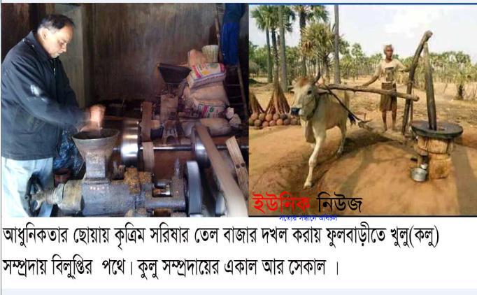 মেহেদী হাসান উজ্জল ফুলবাড়ী,(দিনাজপুর) : দিনাজপুর ফুলবাড়ীতে কৃত্রিম সরিষঅর তেল বাজার দখল করায় ফুলবাড়ীতে খুলু(কলু) সম্প্রদায় বিলু্িপ্তর পথে। ফলে খাঁটি সরিষা তেলের স্বাদ পাচ্ছে না সাধারণ মানুষ।