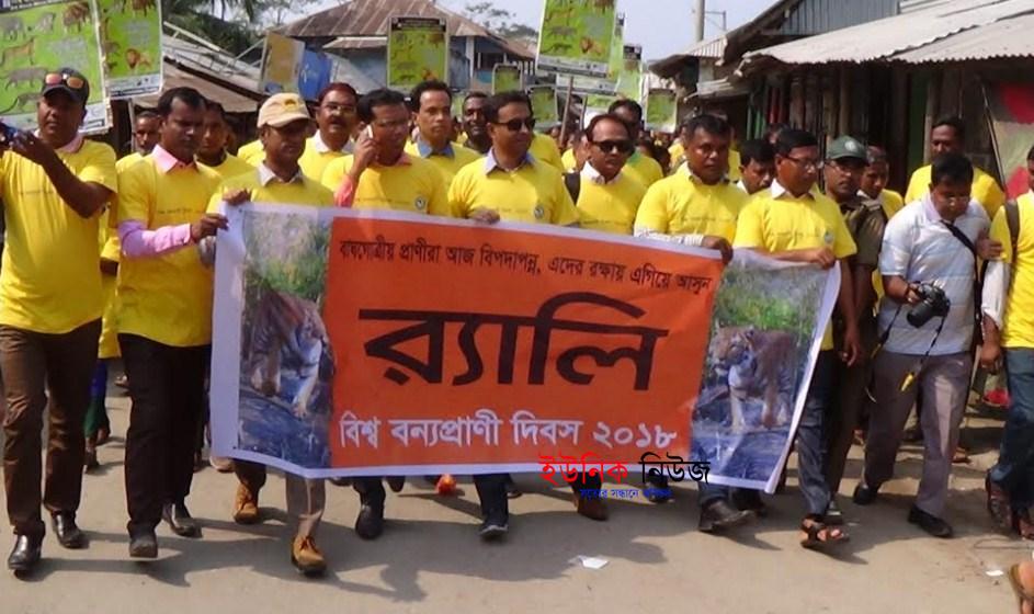 আবু হোসাইন সুমন, মোংলা : ‘বাঘগোত্রীয় প্রাণীরা আজ বিপদাপন্ন, এদের রক্ষায় এগিয়ে আসুন’ শ্লোগানে মোংলায় পালিত হয়েছে বিশ্ব বন্যপ্রাণী দিবস’১৮। বন্যপ্রাণী দিবস উপলক্ষে সোমবার সকালে বন বিভাগের আয়োজনে সুন্দরবন সংলগ্ন চিলা ইউনিয়ন পরিষদ থেকে বের হওয়া বর্ণাঢ্য রালী বৈদ্যমারী বাজার এলাকা প্রদক্ষিণ করে। পরে চিলা ইউনিয়ন পরিষদ মিলনায়তনে অনুষ্ঠিত হয় আলোচনা সভা। উপজেলা নির্বাহী অফিসার মো: রবিউল ইসলামের সভাপতিত্বে অনুষ্ঠিত বিশ্ব বন্যপ্রাণী দিবসের এ আলোচনা সভায় প্রধান অতিথি হিসেবে উপস্থিত ছিলেন খুলনা অঞ্চলের বন সংরক্ষক মো: আমির হোসাইন চৌধুরী। অনুষ্ঠানে অন্যান্যের মধ্যে উপস্থিত ছিলেন পূর্ব সুন্দরবনে বিভাগী বন কর্মকর্তা মো: মাহমুদুল হাসান, পশ্চিম সুন্দরবনের বিভাগীয় বন কর্মকর্তা মো: বশিরুল আল মামুন, বন্যপ্রাণী ব্যবস্থাপনা ও প্রকৃতি সংরক্ষণ বিভাগ খুলনার বিভাগীয় বন কর্মকর্তা মো: মদিনুল আহসান, ডলফিন প্রজেক্ট’র প্রজেক্ট ম্যানেজার মো: রেজাউল করিম, পূর্ব সুন্দরবনের চাদপাই রেঞ্জ কর্মকর্তা মো: শাহিন কবির, চিলা ইউপি চেয়ারম্যান গাজী আকবর হোসেন, ক্রেল’র সমন্বয়কারী তৌহিদুর রহমান, সিএমসি সভাপতি গাজী জহুরুল ইসলাম, জিওপিএ প্রতিনিধি পঞ্চানন কুমার ঢালী ও করমজল বন্যপ্রাণী প্রজনন কেন্দ্র ইনচার্জ হাওলাদার আজাদ কবির। র্যালী ও আলোচনা সভায় সুন্দরবন সংলগ্ন বেশ কয়েকটি গ্রামের বন নির্ভরশীল জনগোষ্ঠীর বিপুল সংখ্যক লোকজন অংশ গ্রহণ করেন। পূর্ব সুন্দরবনের বিভাগীয় বন কর্মকর্তা মো: মাহমুদুল হাসান বলেন, বিশেষ করে এ ধরণের আয়োজন আগে খুলনা বিভাগীয় শহর ও সাতক্ষীরা এবং বাগেরহাট জেলা শহরে করা হতো। কিন্তু এবার তার ব্যতিক্রম করা হয়েছে, কারণ বন্যপ্রাণী সম্পর্কিত এ প্রচারণা মুলত সুন্দরবন সংলগ্ন ও বন নির্ভরশীল যারা তাদের জন্য করা প্রয়োজন। যাতে তারা বাঘসহ অন্যান্য সকল বন্যপ্রাণী সম্পর্কে ধারণা, সচেতনতা ও রক্ষায় এগিয়ে আসতে পারে।