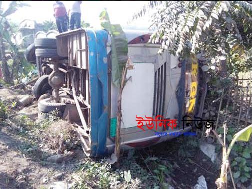 ঝিনাইদহ প্রতিনিধিঃ ঝিনাইদহের কালীগঞ্জে যাত্রীবাহী বাস নিয়ন্ত্রণ হারিয়ে রাস্তার পাশের খাদে পড়ে কমপক্ষে ১০ জন যাত্রী আহত হয়েছে। আহতদের কালীগঞ্জ উপজেলা স্বাস্থ্য কমপে¬ক্সে ভর্তি করা হয়েছে। মঙ্গলবার সকাল ৯টার দিকে বলিদাপাড়া নামকস্থানে এ দুর্ঘটনা ঘটে। প্রত্যক্ষদর্শীরা জানান, চুয়াডাঙ্গা থেকে খুলনাগামী কেজিএন পরিবহনের একটি যাত্রীবাহি বাস (চুয়াডাঙ্গা-জ-০৪-০০০১) কালীগঞ্জ-যশোর মহাসড়কের বলিদাপাড়া নামকস্থানে পৌছালে নিয়ন্ত্রণ হারিয়ে পাশের খাদে পড়ে যায়। এ সময় কমপক্ষে ১০জন যাত্রী আহত হয়। খবর পেয়ে স্থানীয় ফায়ার সার্ভিসের কর্মীরা আহত যাত্রীদের উদ্ধার করে কালীগঞ্জ উপজেলা স্বাস্থ্য কমপে¬ক্সে ভর্তি করে। স্থানীরা আরো জানান, বলিদাপাড়া নামকস্থানে মহাসড়কে পিচ খোয়া উঠে বড় বড় গর্তের সৃষ্টি হয়েছে। মুলত গর্তের কারনেই এই দুর্ঘটনা হয়েছে। কালীগঞ্জ থানার ওসি মিজানুর রহমান দুর্ঘটনার বিষয়টি নিশ্চিত করেছেন।