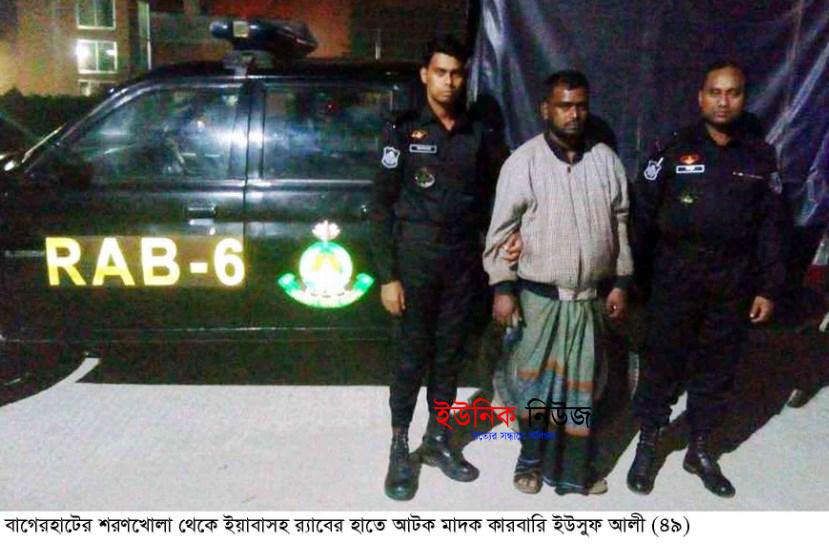 গোপন সংবাদের ভিত্তিতে ওইদিন রাতরাত ৮টার দিকে শরণখোলার পহলানবাড়ি বাসস্ট্যান্ড এলাকা থেকে ইউসুফকে আটক করে র্যাব। ওই মাদক কারবারি উপজেলার ধানসাগর ইউনিয়নের ছোট নলবুনিয়া গ্রামের মৃত কদম আলী আকনের ছেলে।