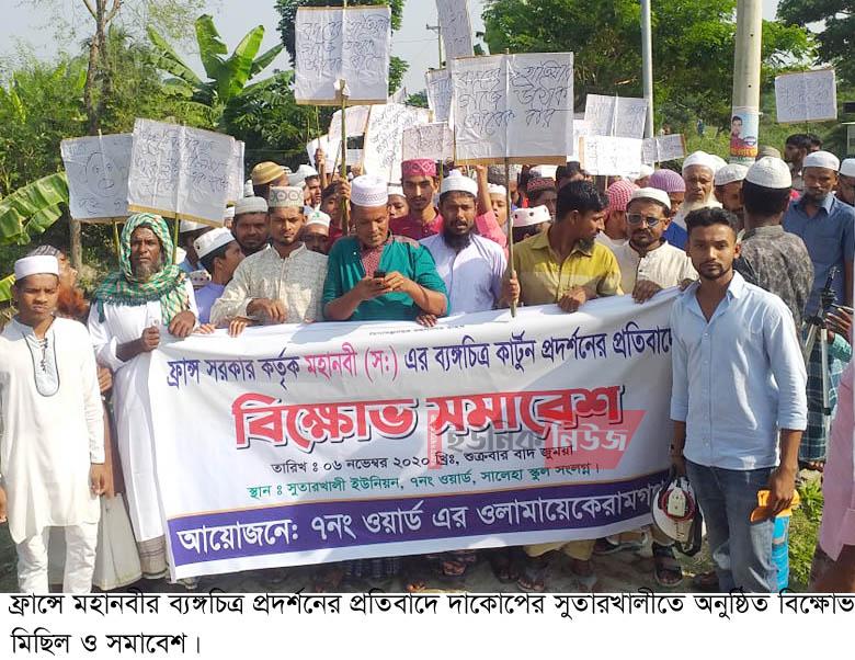 দাকোপ প্রতিনিধি : ফ্রান্সে মহানবী হযরত মুহাম্মদ (সঃ) এর ব্যঙ্গচিত্র প্রদর্শনের প্রতিবাদে দাকোপের নলিয়ানে ওলামা মাশায়েখের উদ্যোগে বিক্ষোভ মিছিল ও প্রতিবাদ সমাবেশ অনুষ্ঠিত হয়েছে।