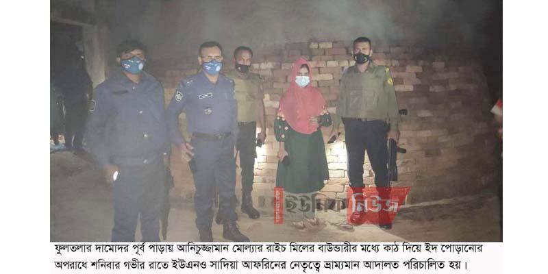 ফুলতলায় কাঠ দিয়ে ইট পোড়ানোয় ভ্রাম্যমান আদালতের জরিমানা