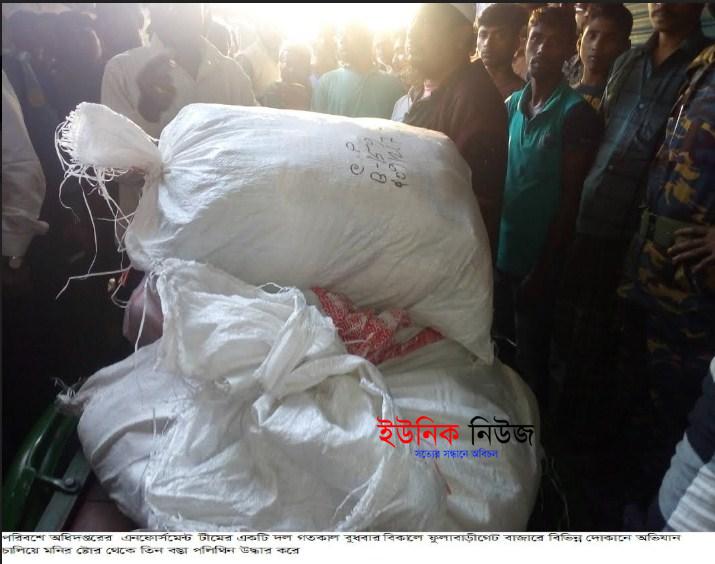 ফুলবাড়ীগেট বাজারে নিষিদ্ধ পলিথিন জব্দ