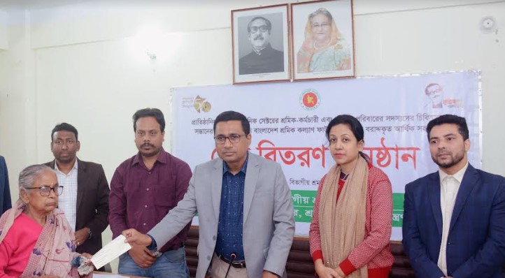 তথ্য বিবরণী : বিভাগীয় শ্রম দপ্তরের উদ্যোগে প্রাতিষ্ঠানিক ও অপ্রাতিষ্ঠানিক সেক্টরের শ্রমিক-কর্মচারী এবং তাঁদের পরিবারের সদস্যদের চিকিৎসা ও সন্তানদের উচ্চ শিক্ষার জন্য বাংলাদেশ শ্রমিক কল্যাণ ফাউন্ডেশন থেকে বরাদ্দকৃত আর্থিক সহায়তার চেক বিতরণ সোমবার দুপুরে শ্রম দপ্তরের সম্মেলনকক্ষে অনুষ্ঠিত হয়।