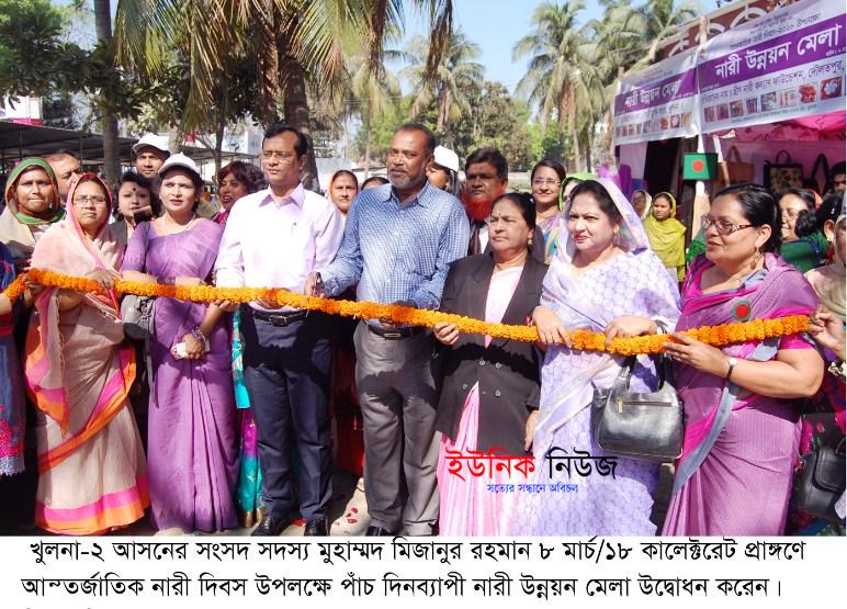 খুলনা : ‘সময় এখন নারীর: উন্নয়নে তারা, বদলে যাচ্ছে গ্রাম-শহরে কর্ম-জীবন ধারা’। প্রতিপাদ্য নিয়ে খুলনায় বৃহস্পতিবার নানা আয়োজনে পালিত হয় আন্তর্জাতিক নারী দিবস-২০১৮। খুলনা জেলা প্রশাসন, জেলা মহিলা বিষয়ক দপ্তর, সরকারি-বেসরকারি দপ্তর, সামাজিক-সংস্কৃতিক সংস্থা ও বিভিন্ন স্বেচ্ছাসেবী মহিলা সংগঠন যৌথভাবে এ অনুষ্ঠানের আয়োজন করে। কর্মসূচির মধ্যে ছিল র্যালি, আলোচনা সভা ও পাঁচ দিনব্যাপী নারী উন্নয়ন মেলার উদ্বোধন ও সাংস্কৃতিক অনুষ্ঠান। এ উপলক্ষে সকাল ১০টায় খুলনা কালেক্টরেট প্রাঙ্গণে আলোচনা সভা অনুষ্ঠিত হয়। আলোচনা সভায় প্রধান অতিথি হিসেবে উপস্থিত ছিলেন খুলনা-২ আসনের সংসদ সদস্য মুহাম্মদ মিজানুর রহমান।