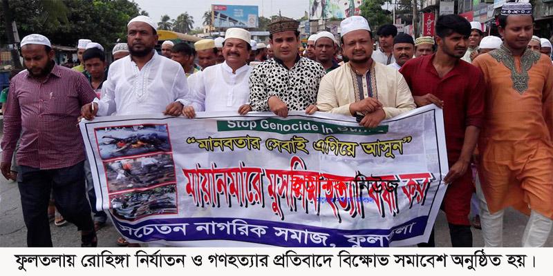 ফুলতলায় রোহিঙ্গা নির্যাতন ও গণহত্যার প্রতিবাদে বিক্ষোভ
