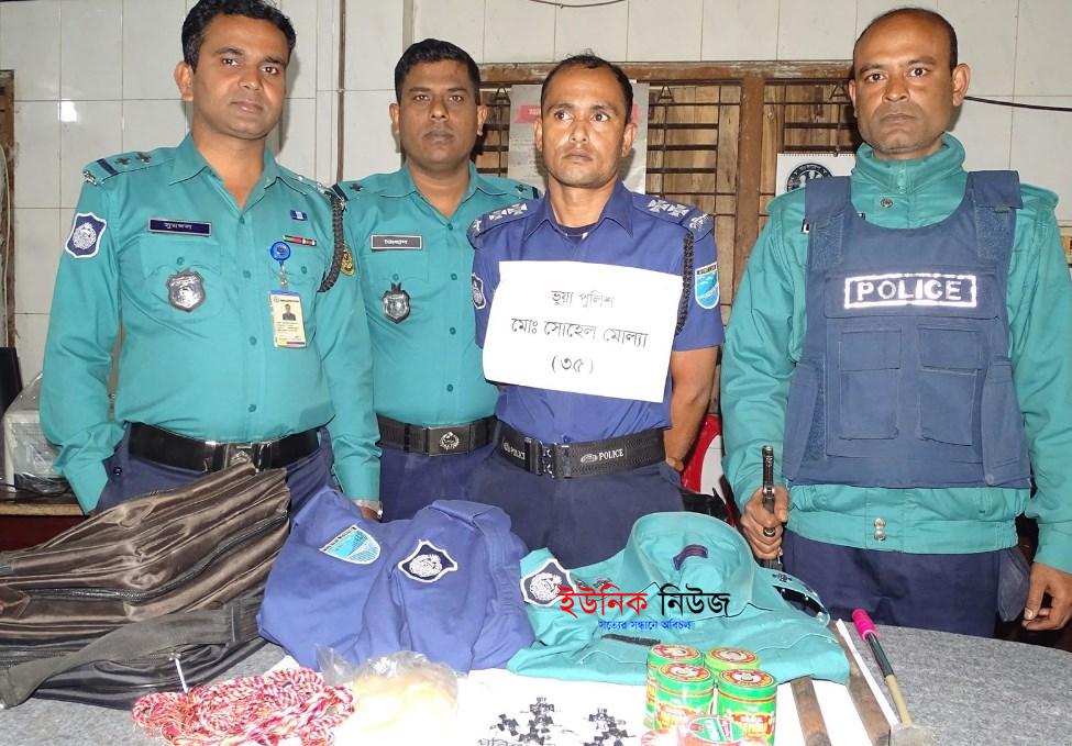 আড়ংঘাটা থানা অফিসার ইনচার্জ রেজাউল করিম জানান, শনিবার দিবাগত রাতে রায়ের মহল এলাকা থেকে একটি প্রাইভেট কারসহ এক ভুয়া পুলিশ কর্মকর্তা সোহেল মোল্যা ওরফে জাকিরকে (৩৪) আটক করা হয়েছে। সে নড়াইল জেলার লোহাগড়া এলাকার আছাদ মোল্যার ছেলে। প্রাথমিক ভাবে জানা গেছে, আটক জাকির ও তার সহযোগীরা ভুয়া পুলিশ পরিচয়ে বিভিন্ন জেলা শহরে গিয়ে চাঁদাবাজি অব্যাহত রেখেছিল। শনিবার রাতেও একটি অপরাধ সেরে পালানোর চেষ্টা করছিল। এ ম্যাসেজ পেয়েই মুহুর্তের মধ্যে তৎপর হয়ে টহল পুলিশ জোরদার করে রায়ের মহল এলাকায় ওৎ পেতে থাকতে বলা হয়। কিছুক্ষণের মধ্যে প্রাইভেট কারটি এলে তার মধ্যে অভিযান চালিয়ে সোহেল মোল্যা ওরফে জাকিরকে আটক করা হয়। তার গায়ে পুলিশের এসআই’র র্যাঙ্কসহ পোশাক পরা ছিল। এ সময় গাড়ীর ভিতর থেকে ভিকটীম সেকেন্দার আলীকে উদ্ধার করা হয়। তবে পুলিশের উপস্থিতি টের পেয়ে জাকিরের অপর ৩ সহযোগী পালিয়ে গেছে। এ ব্যাপারে আড়ংঘাটা থানায় ভিকটীম সেকেন্দার গাজী বাদী হয়ে একটি অপহরণ ও প্রতারণা মামলা দায়ের করেছেন যার নং-০৩।