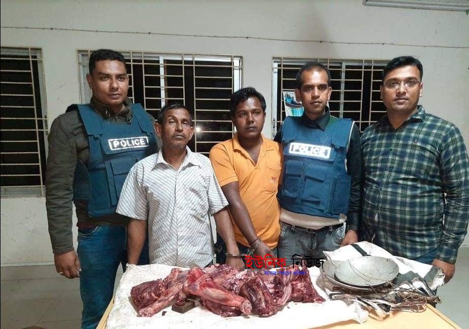 কয়রা(খুলনা)প্রতিনিধি : কয়রা থানা পুলিশ অভিযান চালিয়ে ৮ কেজি হরিণের মাংস সহ দুই জনকে আটক করেছে। পুলিশ জানায়, গোপন সংবাদের ভিত্তিতে গত ৭ মার্চ রাত পৌনে ১১ টার দিকে অভিযান চালিয়ে ১ নং কয়রা মাঝারআইট গ্রামের মৃত অফেজ উদ্দিন মোড়লের পুত্র মানছুর রহমার(৬০) ও তার পুত্র মোশারাফ হোসেন(৩০) নিজ বাড়ি থেকে ৮ কেজি হরিণের মাংস সহ আটক করা হয়। এ সময় ৪ নং কয়রা গ্রামের নওশের আলী সানার পুত্র রুহুল আমিন সানা পালিয়ে যায়। থানা অফিসার ইনচার্জ মোঃ রবিউল হোসেন জানান, হরিণের মাংস সহ আটক দুই জন এবং পলাতক এক জনের নামে বন্য প্রানী সংরক্ষন আইনে মামলা হয়েছে ।