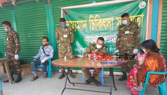 সামাজিক দূরত্ব বজায় রেখে সেনাবাহিনীর চিকিৎসক শিশু সহ বিভিন্ন বয়সের প্রায় ৫০ জনেরও বেশী রোগী দেখেন এবং ব্যবস্থাপত্র অনুযায়ী রোগীদের বিনামূল্যে ঔষুধ প্রদান করেন।