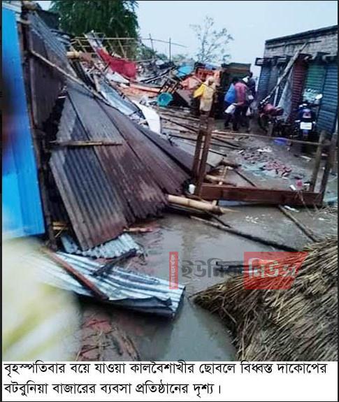 আজগর হোসেন ছাব্বিরঃ বৃহস্পতিবার সন্ধ্যার পর দাকোপ উপজেলার উপর দিয়ে বয়ে যাওয়া কালবৈশাখী ঝড়ে ব্যাপক ক্ষয়ক্ষতি হয়েছে। বিভিন্ন ব্যবসা প্রতিষ্ঠান ও ঘরবাড়ী বিধবস্তসহ প্রায় ৫০ লক্ষ টাকার ক্ষতিসাধন হয়েছে বলে ধারনা করা হচ্ছে। ঝুঁকির মুখে আছে মাঠের তরমুজ।