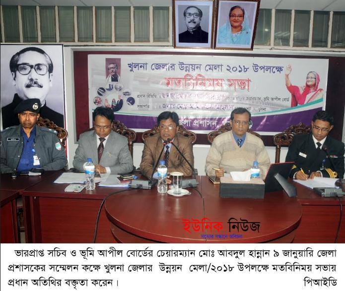 মতবিনিময় সভায় প্রধান অতিথি হিসেবে উপস্থিত ছিলেন ভূমি আপিল বোর্ডের চেয়ারম্যান (ভারপ্রাপ্ত সচিব) মোঃ আব্দুল হান্নান। তিনি খুলনা জেলা উন্নয়ন মেলা আয়োজনে সরকারের দায়িত্বপ্রাপ্ত সচিব হিসেবে সমগ্র আয়োজন তদারকি করেেছন।