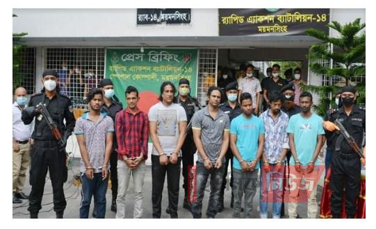 পরে তাদের বাসায় অভিযান চালিয়ে ২টি পিস্তল, ১টি রিভালভার, ৩টি ম্যাগাজিন, ২টি বন্দুক, ৭টি রামদা, বিপুল পরিমাণ অস্ত্র-গোলাবারুদ, মাদক, রাইফেলের টেলিস্কোপিং সাইট এবং অস্ত্র তৈরির সরঞ্জাম উদ্ধার করা হয়। গ্রেপ্তারকৃত বাকীরা হলেন, রায়হান আহমেদ রাজিব, মানিক মিয়া, হৃদয় আহমেদ রাজিব, মো. রাজিব ও বাপ্পি খান।