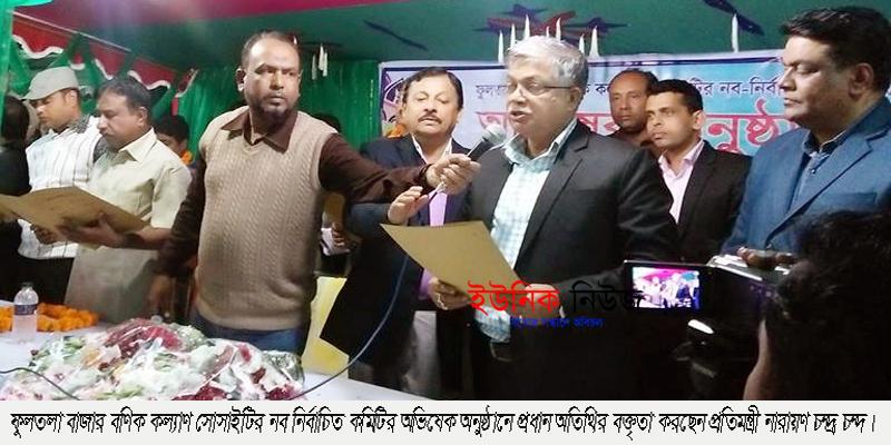 ফুলতলা (খুলনা) প্রতিনিধিঃ ফুলতলা বাজার বণিক কল্যাণ সোসাইটির নব নির্বাচিত কমিটির অভিষেক ও ক্ষমতা হস্তান্তর অনুষ্ঠান শনিবার রাত ৮টায় বাজারের গামছা চান্দিনায় অনুষ্ঠিত হয়। নির্বাচন পরিচালনা কমিটির চেয়ারম্যান মোঃ আসলাম খানের সভাপতিত্বে অনুষ্ঠানে প্রধান অতিথি ছিলেন মৎস্য ও প্রাণী সম্পদ প্রতিমন্ত্রী নারায়ণ চন্দ্র চন্দ। বিশেষ অতিথি ছিলেন উপজেলা পরিষদের চেয়ারম্যান আলহাজ¦ শেখ আকরাম হোসেন, ওসি মোঃ আসাদুজ্জামান মুন্সী। নির্বাচন পরিচালনা কমিটির সদস্য মৃনাল হাজরার পরিচালনায় অন্যান্যের মধ্যে বক্তৃতা করেন নব নির্বাচিত সভাপতি মোঃ ফিরোজ জমাদ্দার, সাধারণ সম্পাদক মনির হাসান টিটো, সহসভাপতি এস রবিন বসু, নির্বাচন পরিচালনা কমিটির সদস্য আজিজুল হক ফারাজি, আলহাজ¦ শহিদুল ইসলাম মোড়ল, দুলাল অধিকারী, খান সুলতান মাহমুদ, প্রভাষক রেজোয়ান হোসেন রাজা, আহসানুল হক লড্ডন, শেখ আবুল কাশেম, যুগ্ন সম্পাদক এস কে মিজানুর রহমান, কোষাধ্যক্ষ মোঃ আলমগীর হোসেন খাঁন, ক্রীড়া সম্পাদক তারেক হোসেন নাইচ, সাংগঠনিক সম্পাদক মোস্তাফিজুর রহমান, দপ্তর সম্পাদক মোঃ মাসুম শেখ, কার্যনির্বাহী সদস্য মোঃ আনিসুল ইসলাম মিন্টু, ইলিয়াস মোল্যা, খন্দকার রকিবুল ইসলাম, মোঃ শাহীন সরদার, তৌহিদুর রহমান মিলন, মোঃ সাগর গাজী, আরমান হোসেন মনে ভূঁইয়া ও জাহিদুল ইসলাম লাভলু।