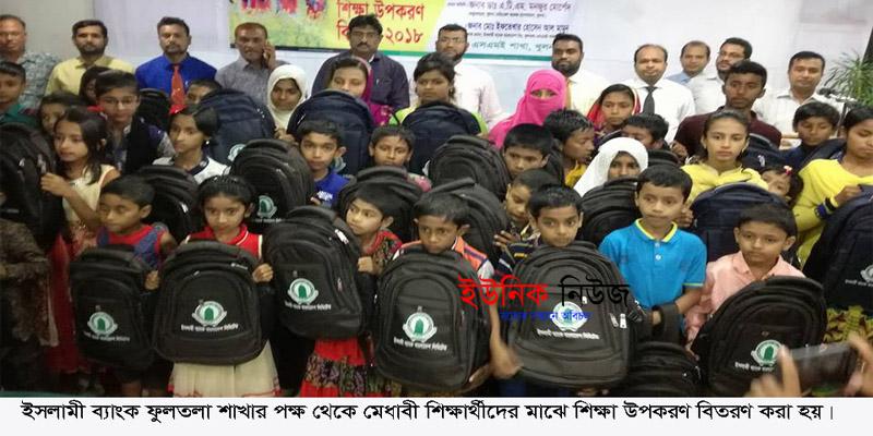 ফুলতলা (খুলনা) প্রতিনিধিঃ ইসলামী ব্যাংক বাংলাদেশ লিমিটেড ফুলতলা শাখা পল্লী উন্নয়ন প্রকল্পের সদস্যদের মেধাবী সন্তানদের মাঝে শিক্ষা উপকরণ বিতরণ ২০১৮ মঙ্গলবার বিকালে শাখা কার্যালয়ে ব্যাবস্থাপক মোঃ ইফতেখার হোসেন আল মামুনের সভাপতিত্বে অনুষ্ঠিত হয়। অনুষ্ঠানে প্রধান অতিথি ছিলেন খুলনা মেডিকেল কলেজ হাসপাতালের তত্ত্বাবধায়ক ডাঃ এটিএম মঞ্জুর মোর্শেদ। স্বাগত বক্তৃতা করেন ম্যানেজার অপারেশনস মোঃ আলমগীর হোসেন। বিশেষ অতিথি ছিলেন ভারপ্রাপ্ত অধ্যক্ষ শেখ গোলাম কিবরিয়া। আব্দুল্লাহ আল মাসুদের পরিচালনায় অনুষ্ঠানে অন্যান্যের মধ্যে বক্তৃতা করেন আরডিএস প্রোজেক্ট ইনচার্জ মোঃ জহুরুল ইসলাম, অভিভাবক লিপি কর, শেখ জাহাঙ্গীর আলম, মেধাবী শিক্ষার্থী তিন্নী খাতুন ও মোঃ জাকারিয়া। অন্যান্যের মধ্যে উপস্থিত ছিলেন উপজেলা প্রেসক্লাব সভাপতি শেখ শামসুল আলম খোকন, সহকারী অধ্যাপক মোঃ নেছার উদ্দিন, ব্যাংক কর্মকর্তা মোঃ আবু জাফর, মুতাসিম বিল্লাহ, মোঃ সাইফুল ইসলাম, রাবেয়া খাতুন, সুমাইয়া খাতুন প্রমুখ। প্রধান অতিথি ইসলামী ব্যাংকের সামাজিক কল্যাণকর কর্মকান্ড ও শিক্ষা বৃত্তি প্রদানের কথা উল্লেখ করে বলেন, মেধা বিকাশে দারিদ্রতা কোন সমস্যা নয়, বরং শিক্ষার্থীদের আত্মপ্রত্যয় নিয়েই কাঙিত লক্ষ্যে নিয়ে এগিয়ে যেতে হবে। অনুষ্ঠানে বিভিন্ন শিক্ষা প্রতিষ্ঠানের প্রথম শ্রেণি থেকে দশম শ্রেণির মেধাবী ১৪৬ শিক্ষার্থীদের মাঝে স্কুল,ছাতাসহ বিভিন্ন শিক্ষা সামগ্রী বিতরণ করা হয়।