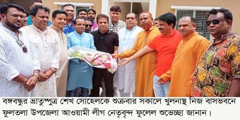 ফুলতলা (খুলনা) প্রতিনিধি// বঙ্গবন্ধুর ভ্রাতুষ্পুত্র ও আওয়ামী যুবলীগের প্রেসিডিয়াম সদস্য শেখ সোহেলের সাথে খুলনাস্থ নিজ বাসভবনে ফুলতলা উপজেলা আওয়ামী লীগ নেতৃবৃন্দ শুক্রবার সকালে সৌজন্য সাক্ষাত শেষে ফুলেল শুভেচ্ছা জানান। এ সময় অন্যান্যের মধ্যে উপস্থিত ছিলেন খুলনা জেলা আওয়ামী লীগের সহ-সভাপতি বিএমএ সালাম, উপজেলা আওয়ামী লীগের ভারপ্রাপ্ত সাধারণ সম্পাদক এস মৃনাল হাজরা, জেলা আওয়ামী লীগের সাবেক কৃষি বিষয়ক সম্পাদক মোঃ আসলাম খান, সাবেক ছাত্রলীগ নেতা এস কে মিজানুর রহমান, যুবলীগ নেতা ইকতিয়ার উদ্দিন, মোঃ মিরাজুল ইসলাম ।