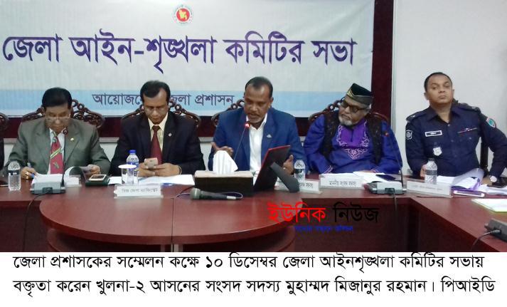 খুলনা : খুলনা ‘জেলা আইনশৃঙ্খলা’ এবং ‘সন্ত্রাস ও নাশকতা প্রতিরোধ’ কমিটির মাসিক সভা রবিবার সকালে জেলা প্রশাসকের সম্মেলন কক্ষে অনুষ্ঠিত হয়। খুলনা জেলা প্রশাসক ও জেলা ম্যাজিস্ট্রেট মোঃ আমিন উল আহসান এতে সভাপতিত্ব করেন। এসময় আইনশৃঙ্খলা কমিটির উপদেষ্টা খুলনা-২ আসনের সংসদ সদস্য মুহাম্মদ মিজানুর রহমান, খুলনা-৬ আসনের সংসদ সদস্য শেখ মোঃ নূরুল হক এবং খুলনা জেলা পরিষদের চেয়ারম্যান শেখ হারুনুর রশীদ উপস্থিত ছিলেন। সভায় মুহাম্মদ মিজানুর রহমান এমপি তাঁর বক্তৃতায় বলেন, খুলনা মহানগরীতে যানজট, ইজিবাইক ও অবৈধ যানবাহন নিয়ন্ত্রণ করে একটি সুষ্ঠু পরিবহণ ব্যবস্থা ফিরিয়ে আনতে সংশ্লিষ্ট কর্তৃপক্ষগুলোকে নিয়ে সিদ্ধান্ত গ্রহনের পরিকল্পনা চলমান আছে। যা আগামী মাসের ১৫ তারিখের মধ্যে চুড়ান্ত হবে বলে তিনি আশাবাদ ব্যক্ত করেন। অপরদিকে শেখ মোঃ নূরুল হক এমপি ইয়াবা, মাদক স্কুল কলেজ পড়–য়া ছেলেমেয়েদের মাঝে ছড়িয়ে পড়ছে বলে উদ্বেগ প্রকাশ করেন এবং মাদকদ্রব্য অধিদপ্তর সহ আইনশৃঙ্খলা বাহিনীকে কঠোর হস্তে দমনের পরামর্শ প্রদান করেন। এছাড়া তিনি অবকাঠামো উন্নয়নের অতি প্রয়োজনীয় উপকরণ বালুর চাহিদা পূরণের লক্ষ্যে যত্রতত্র বালু উত্তোলন না করে সরকারি নীতি অনুসরণ করে জেলায় বালু মহল বৃদ্ধির কথা বলেন। পাশাপাশি সরকারি খাস জমি সুষ্ঠু ব্যবস্থাপনার মাধ্যমে প্রকৃত ব্যক্তিদের কাছে প্রদানের আহবান জানান। এছাড়া সভায় নগরীতে ভ্রাম্যমান হকাররা যাতে নির্দিষ্ট স্থানে বা একটি পরিকল্পিত ব্যবস্থায় তাদের ব্যবসা পরিচালনা করতে পারে সে প্রস্তাব উপস্থাপন হয়। রাতের বেলা শহরে পুলিশ ও র্যাবের টলহল বৃদ্ধি করা, গুরুত্বপূর্ণ স্পটগুলোতে চেকপোস্ট স্থাপন করা, মাইকিং করে লটারি, জুয়া এবং এ ধরণের কাজ বন্ধ করা, স্কুল-কলেজের সামনে বখাটেদের দৌরাত্ম বন্ধ করা, মোবাইল কোর্ট কার্যক্রম অব্যহত রাখার সিদ্ধান্ত নেয়া হয়। সভায় অতিরিক্ত পুলিশ সুপার, অতিরিক্ত জেলা ম্যাজিস্ট্রেট, উপজেলা চেয়ারম্যান, কেএমপি, র্যাব ও উপজেলা নির্বাহী কর্মকর্তাসহ কমিটির অন্যান্য সদস্যগণ অংশগ্রহণ করেন। সভায় আইনশৃঙ্খলা প্রতিবেদনে জানানো হয়, খুলনা মহানগরীর আটটি থানায় গত নভেম্বর/১৭ মাসে চুরি ২টি, খুন ২টি, অস্ত্র আইনে ২টি, দ্রুত বিচারে ১টি, ধর্ষণ ৩টি, নারী ও শিশু নির্যাতন ১১টি, মাদকদ্রব্য ১৫৭টি এবং অন্যান্য ৪০টি সহ মোট ২১৮টি মামলা দায়ের হয়েছে। গত অক্টোবর/১৭ মাসে এ সংখ্যা ছিল ২২৬টি। জেলার নয়টি থানায় নভেম্বর/১৭ মাসে চুরি ১টি, খুন ১টি, অস্ত্র আইনে ২টি, ধর্ষণ ১টি, অপহরণ ১টি, নারী ও শিশু নির্যাতন ১৫টি, নারী ও শিশু পাচার ৪টি ও মাদকদ্রব্য ৫৪টি এবং অন্যান্য আইনে ৬২টি সহ মোট ১৪১টি মামলা দায়ের হয়েছে। গত অক্টোবর /১৭ মাসে এ 