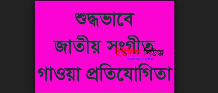 খুলনা : খুলনা বিভাগীয় পর্যায়ে শুদ্ধভাবে জাতীয় সংগীত পরিবেশন প্রতিযোগিতা অনুষ্ঠিত হয়েছে। শনিবার সকাল ১১টার দিকে খুলনা পাবলিক কলেজে এ প্রতিযোগিতা অনুষ্ঠিত হয়। দেশব্যাপী সব শিক্ষা-প্রতিষ্ঠানে শিক্ষার্থীদের শুদ্ধভাবে জাতীয় সংগীত চর্চাকে অনুপ্রাণিত করার লক্ষ্যে এ প্রতিযোগিতার আয়োজন করা হয়েছে। খুলনা বিভাগীয় প্রশাসনের আয়োজনে ও ঢাকাস্থ মন্ত্রিপরিষদ সহযোগিতায় উক্ত প্রতিযোগিতায় বিভাগের ১০ জেলায় প্রাথমিক, মাধ্যমিক ও উচ্চ মাধ্যমিক শিক্ষার্থীরা অংশ গ্রহন করেন।
