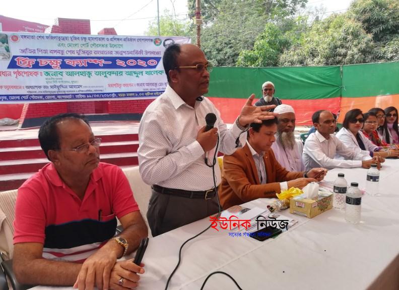 মোংলা (বাগেরহাট) প্রতিনিধি : জাতির পিতা বঙ্গবন্ধু শেখ মুজিবুর রহমানের জন্মশতবার্ষিকী উপলক্ষ্যে মোংলায় ফ্রি চক্ষু ক্যাম্প অনুষ্ঠিত হয়েছে। পৌর শহরের রিমঝিম চত্বরে বুধবার সকাল থেকে বিকেল পর্যন্ত দিনব্যাপী এ চক্ষু ক্যাম্পের আয়োজন করে মোংলা পোর্ট পৌরসভা এবং গোপালগঞ্জ’র বঙ্গমাতা শেখ ফজিলাতুন্নেছা মুজিব চক্ষু হাসপাতাল ও প্রশিক্ষণ প্রতিষ্ঠান। পৌর মেয়র আলহাজ্ব মো: জুলফিকার আলীর সভাপতিত্বে অনুষ্ঠিত ফ্রি চক্ষু ক্যাম্পে প্রধান অতিথি হিসেবে উপস্থিত ছিলেন বঙ্গমাতা শেখ ফজিলাতুন্নেছা মুজিব চক্ষু হাসপাতাল ও প্রশিক্ষণ প্রতিষ্ঠান’র পরিচালক অধ্যাপক ডা: সাইফুদ্দিন আহমেদ। দিনভর প্রায় দেড় হাজার রোগীকে ফ্রি চিকিৎসা সেবা দিয়েছেন বঙ্গমাতা শেখ ফজিলাতুন্নেছা মুজিব চক্ষু হাসপাতাল ও প্রশিক্ষণ প্রতিষ্ঠানের বিশেষজ্ঞ চিকিৎসকেরা। এ সময় পৌর কর্তৃপক্ষের পক্ষ থেকে রোগীদের ফ্রি চশমা ও ওষুধ বিতরণ করা হয়েছে। এছাড়া এখান থেকে বাছাইকৃত রোগীদের পৌর মেয়র জুলফিকার আলীর সহায়তায় গোপালগঞ্জ বঙ্গমাতা শেখ ফজিলাতুন্নেছা মুজিব চক্ষু হাসপাতালে নিয়ে ফ্রি চোখের অপারেশন করানো হবে।