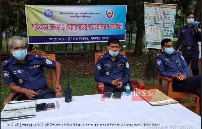 মনোজ রায় হিরু, আটোয়ারী : পঞ্চগড়ের আটোয়ারীতে থানা পুলিশের সহযোগিতায় ট্রাফিক বিভাগ পঞ্চগড়ের আয়োজনে “ ট্রাফিক আইন মেনে চলুন, সড়ক দূর্ঘটনা প্রতিরোধ করুন, দেশের উন্নয়নে ভূমিকা রাখুন” শ্লোগানকে সামনে রেখে ‘পরিবহন চালক ও হেল্পারগন’র একদিনের কর্মশালা অনুষ্ঠিত হয়েছে। বুধবার (১২ আগষ্ট) সকালে স্বাস্থ্যবিধি মেনে আটোয়ারী থানার অফিসার ইনচার্জ মো: ইজার উদ্দীন এর সভাপতিত্বে এই প্রশিক্ষণ কর্মশালা অনুষ্ঠিত হয়। থানা ক্যাম্পাসে অনুষ্ঠিত কর্মশালায় প্রধান অতিথির বক্তব্য রাখেন- ট্রাফিক বিভাগ পঞ্চগড় এর ট্রাফিক ইন্সপেক্টর (প্রশাসন) কাজী কামরুল ইসলাম। প্রশিক্ষণে সহায়ক হিসেবে ট্রাফিক ইন্সপেক্টর (টি.আই) মোঃ ফিরোজ কবীর ও মোঃ জুনায়দুর রহমান উপস্থিত থেকে উপজেলার ৬৩ জন মাহেন্দ্র ট্রাক্টর চালক ও হেল্পারকে প্রশিক্ষণ প্রদান করেন। এসময় উপজেলায় কর্মরত গণমাধ্যমকর্মীগণ উপস্থিত ছিলেন।