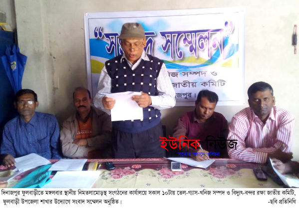 সংবাদ সম্মেলনে লিখিত বক্তব্য পাঠ করেন তেল-গ্যাস-খনিজ সম্পদ ও বিদ্যুৎ-বন্দর রক্ষা জাতীয় কমিটি, ফুলবাড়ী উপজেলা শাখার ভারপ্রাপ্ত আহবায়ক মোঃ হামিদুল হক।