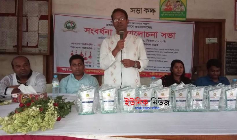 সভাপতি তার বক্তব্যে বলেন, ভালো ফলাফল করলে একজন ছাত্র কে সংবর্ধনা দেয়া হয় ভালো অর্জন করলে কোন বিশেষ ব্যক্তিকে সংবর্ধনা দেয়া হয় কিন্তু যারা নিজের রক্ত দিয়ে অন্য মানুষের জীবন বাঁচাতে এগিয়ে আসে তাদের কেউ বিশেষভাবে সম্মান দেখায় না। আজ আমরা সেই সকল মহান ব্যক্তিদের ক্রেস্ট দিয়ে সম্মান জানাবো যারা নিজের রক্ত দান করে সেচ্ছায়। আগামীতে আমাদের এই রকম অনুষ্ঠান অব্যাহত থাকবে।