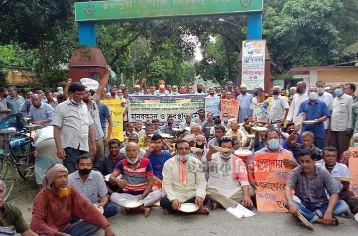 গাইবান্ধা প্রতিনিধি : গাইবান্ধা জেলার কৃষিভিত্তিক একমাত্র ভারিশিল্প কারখানা মহিমাগঞ্জের রংপুর চিনিকলের শ্রমিক-কর্মচারীদের চার মাসের বকেয়া বেতন ও আখচাষীদের সরবরাহ করা আখের মূল্য পরিশোধের দাবীতে ১৩ জুলাই সোমবার সকালে থালা হাতে চিনিকল এলাকায় এক মানববন্ধন, বিক্ষোভ সমাবেশ ও অবস্থান ধর্মঘট পালন করে। রংপুর চিনিকল শ্রমিক-কর্মচারী ইউনিয়ন ও আখচাষী সমিতি এই কর্মসূচীর আয়োজন করে।