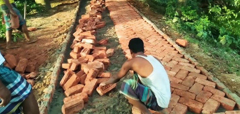 পাইকগাছার মধুখালী খেয়াঘাট ইটের ফ্লাট সোলিং রাস্তা সংস্কার
