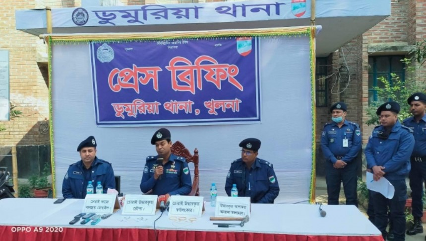 ডুমুরিয়া : ডুমুরিয়া উপজেলার বিভিন্ন এলাকায় একের পর এক সংঘটিত চুরির রহস্য অবশেষে পুলিশ উদ্ধার করতে সক্ষম হয়েছে। থানা পুলিশের অভিযানে আন্তঃজেলা চেতনাশক ওষুধ চক্রের ৮ সদস্যকে গ্রেফতার করা হয়েছে। তাদের কাছ থেকে বিভিন্ন এলাকা থেকে লুট করা স্বর্ণ, রৌপা, মোটরসাইকেল, মোবাইল ফোনসহ লুটকাজে ব্যবহৃত বিভিন্ন যন্ত্রাংশ উদ্ধার করা হয়। বৃহস্পতিবার দুপুরে থানা চত্বরে আয়োজিত প্রেস ব্রিফিংয়ে জেলা পুলিশ সুপার মোহাম্মদ মাহাবুব হাসান (বিপিএম) এ তথ্য জানান। তিনি বলেন, সম্প্রতি ডুমুরিয়া উপজেলার খর্ণিয়ার আঙ্গারদোহা, চুকনগরসহ বিভিন্ন স্থানে চুরির ঘটনা ঘটে। তবে এসব চুরির ধরণ ছিল একই রকম। ভুক্তভোগী বাড়ির মালিকদের এক ধরনের চেতনানাশক খাইয়ে অজ্ঞান করে মালামাল নিয়ে যাচ্ছিল। যা নিয়ে উদ্বিগ্ন হয়ে পড়ে ডুমুরিয়া থানাসহ জেলা পুলিশের উর্ধ্বতন মহল। একই সাথে চোরদের আটকের বিষয়ে তৎপর হয়ে শুরু করা হয় কঠোর অভিযান। একটানা ১০/১২ দিনের অভিযান শেষে বেরিয়ে আসে অনেক তথ্য ও সংশ্লিষ্ট চোরদের হদিস।  প্রেস ব্রিফিংকালে তিনি বলেন, ডুমুরিয়ায় একের পর এক চুরি হচ্ছিল। ঘটনগুলো প্রথমতঃ আমাদের কাছে বিচ্ছিন্ন মনে হতে থাকে। পরে খোঁজ নিয়ে দেখি এ ধরনের চুরির ঘটনা অন্যান্য উপজেলাসহ যশোর, সাতক্ষীরা, বাগেরহাট জেলাতেও সংঘঠিত হচ্ছে। তখন আমরা উর্ধ্বতন মহল বিষয়টি নিয়ে তৎপর হয়ে বিভাগীয় ভাবে তদন্ত শুরু করি। একই সাথে কঠোর অভিযানে নেমে পড়ি। আর এ অভিযানে আমরা মোট ৮ জন চোরকে আটক করতে সক্ষম হয়েছি এবং তাদের দেয়া তথ্যের ভিত্তিতে বেশ কিছু অলঙ্কার যেমন ৩টি সোনার রুলি (বালা), ৪টি আংটি, ১টি চেইন, কিছু রোপার গহনা উদ্ধার করা হয়। এছাড়া চুরির কাজে ব্যবহৃত একটি মোটরসাইকেল, ৭টি মোবাইল ফোন ও কয়েকটি হাতুড়ি জব্দ করা হয়েছে। আটক ৮ জন হলো সাতক্ষীরা সদরের ধুলহর বেড়বাড়ি এলাকার মৃত জামাল উদ্দিন গাজীর ছেলে আলমগীর হোসেন (৩৫), একই জেলার পাটকেলঘাটার চৌগাছা গ্রামের মৃত শেখ আলফাজ উদ্দিনের ছেলে শেখ পলাশ আহমেদ (৪৫) ও আশাশুনির রাধারআটি এলাকার সামাদ মিস্ত্রীর ছেলে সুমন মিস্ত্রী (৩০), তালার জেটুয়া গ্রামের মৃত সামেদ আলী আকুঞ্জীর ছেলে জিয়াউর আকুঞ্জি ওরফে জিয়া (৪০), ডুমুরিয়ার গুটুদিয়া গ্রামের শেখ রুহুল আমিনের ছেলে শেখ আরিফুল ইসলাম (৩৪), যশোর ঝিকরগাছার মধুখালি হাটখোলা এলাকার মৃত গোলাম মন্ডলের ছেলে রমজান আলী মন্ডল ওরফে মনা (৫১) ও বেনাপোল পোর্ট থানার কায়েডা এলাকার মৃত বজলু মোড়লের ছেলে শফিকুল ইসলাম (৪৬) একই থানার কাগজপুর খেদাপাড়া এলাকার মৃত আজগর আলীর ছেলে বাবুল হোসেন (৩৩)। বিভিন্ন স্থানে অভিযান চালিয়ে এদেরকে আটক করে আদালতে সোপর্দ করা হয়েছে। বিফ্রিং’র শেষ পর্যায়ে তিনি বলেন, এখনো আমাদের অভিযান অব্যাহ