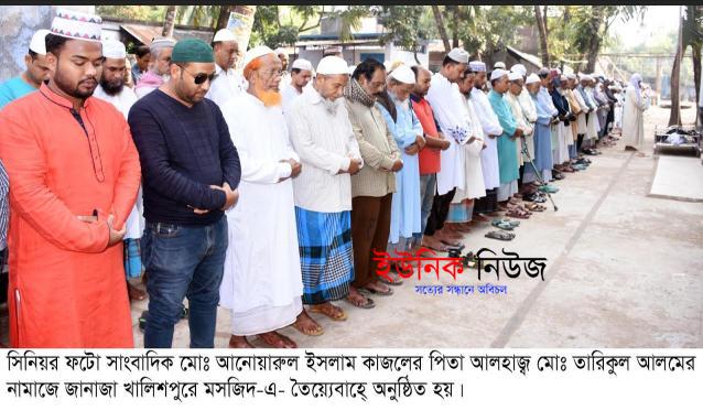 খুলনা : দৈনিক পূর্বাঞ্চলের সিনিয়র ফটো সাংবাদিক ও খুলনা সাংবাদিক ইউনিয়নের সাবেক সভাপতি আনোয়ারুল ইসলাম কাজলের পিতা এবং খুলনা প্রেসক্লাবের সাবেক যুগ্ম সম্পাদক আনোয়ার হোসেনের শ্বশুর আলহাজ্ব মো: তরিকুল আলমের নামাজে জানাজা ও দাফন গতকাল বুধবার সম্পন্ন হয়েছে। বুধবার বাদ আসর নগরীর খালিশপুরস্থ তৈয়্যেবাহ জামে মসজিদ চত্বরে নামাজে জানাজা শেষে গোয়ালখালী কবরস্থানে দাফন করা হয়। নামাজে জানাজায় ইমামতি করেন মসজিদে তৈয়্যেবার পেশ ইমাম ও খতীব মাওলানা মুফতি মুজিবুর রহমান।