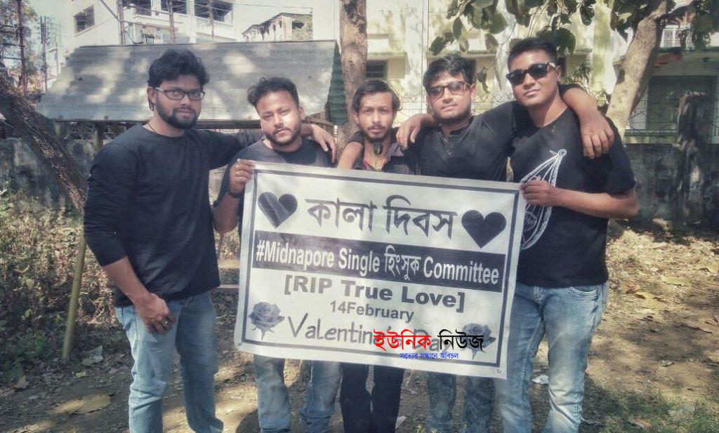 বিশেষ প্রতিবেদক, ভারত, আন্তর্জাতিক ডেস্ক: “সত্য সেলুকাস বিচিত্র এই দেশ” । ভারত দেখে বলা সেই কথা আজও সত্য । সম্প্রতি ভাইরাল হয়েছে ভারতের পশ্চিমবঙ্গ রাজ্যের পশ্চিম মেদিনীপুর জেলার বেশ কিছু ছবি ও ভিডিও । যেখানে “মেদিনীপুর সিঙ্গেল হিংসুক কমিটি”র ব্যানারে একদল ছেলে কালো পোশাক পরে প্রেম দিবসকে “কালা দিবস” হিসেবে পালন করছে । তাতে লেখা রেস্ট ইন পিস ট্রু লাভ । ব্যানারে গোলাপ ও হৃদপিন্ডের রঙ কালো । তাদের স্লোগান – জয় কালা , কালা দিবস দীর্ঘ জীবি হোক , কালা সেলাম । এই নিয়ে হিংসুক কমিটি দ্বিতীয় বছর দিনটি পালন করল । সংগঠনের সভাপতি অভিজিৎ অধিকারী বলেন , এই দিনে সেন্ট ভ্যালেন্টাইনের মৃত্যু দন্ড দেওয়া হয়েছিল । দিনটির ইতিহাস ভুলে মানুষ নিছক হুজুগে মেতেছে । সত্যিকারের ভালোবাসাও লুপ্ত প্রায় । ইতিহাস মনে করাতেই ব্যানার, লিফলেট, পোস্টার নিয়ে এই কর্মসূচী । সুদীপ দাস দের এই উদ্যোগ সত্যিই নজর কেড়েছে । পক্ষে, বিপক্ষে মত রয়েছে । সব ছাড়িয়ে বিভিন্ন সোশ্যাল মিডিয়ায় ভাইরাল হিংসুক কমিটির ছবি ও ভিডিও । কমিটির পক্ষ থেকে জানানো হয়েছে, হিংসুক শব্দ ব্যাঙ্গার্থে । তবে এই কথা সত্যি সকলেই বর্তমানে সিঙ্গল । প্রেমে জড়াতেও চায়না । কারণ হয়তো কখনও ‘আঘাত’ । তবে সংযোজন কালো গোলাপ বেশ রঞ্জিত করেছে কালা দিবসকে ।