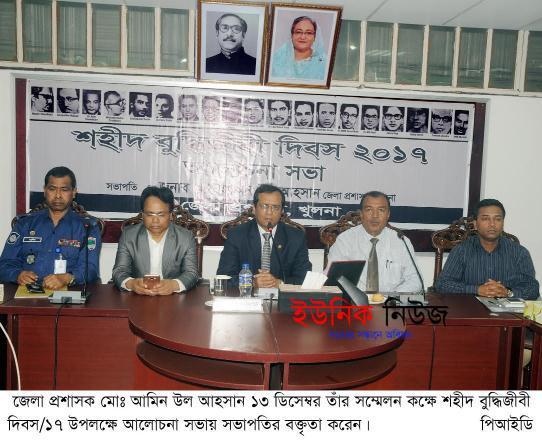 খুলনা : শহীদ বুদ্ধিজীবী দিবস ২০১৭ উপলক্ষে বৃহস্পতিবার সকালে খুলনা জেলা প্রশাসকের সম্মেলন কক্ষে আলোচনা সভা অনুষ্ঠিত হয়। খুলনা জেলা প্রশাসন এ অনুষ্ঠানে আয়োজন করে।