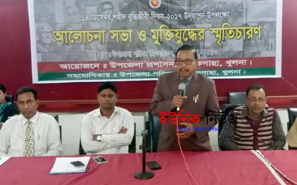 পাইকগাছা (খুলনা) : পাইকগাছায় শহীদ বুদ্ধিজীবি দিবস উপলক্ষে উপজেলা প্রশাসন ও বিভিন্ন শিক্ষা প্রতিষ্ঠনের উদ্যোগে পৃথক আলোচনা সভা অনুষ্ঠিত হয়েছে। বৃহস্পতিবার সকালে উপজেলা পরিষদ মিলনায়তনে উপজেলা নির্বাহী অফিসার মোঃ ফকরুল হাসানের সভাপতিত্বে ও সহকারী শিক্ষা অফিসার শোভা রায়ের পরিচালনায় অনুষ্ঠিত আলোচনা সভায় প্রধান অতিথি ছিলেন, উপজেলা চেয়ারম্যান এ্যাডঃ স ম বাবর আলী। বিশেষ অতিথি ছিলেন, অধ্যক্ষ মিহির বরণ মন্ডল, মোঃ রবিউল ইসলাম, মুক্তিযোদ্ধা কমান্ডার শেখ শাহাদাৎ হোসেন বাচ্চু, প্রাক্তন অধ্যক্ষ রমেন্দ্রনাথ সরকার, শিবসা সাহিত্য অঙ্গনের সভাপতি সুরাইয়া বানু ডলি। বক্তব্য রাখেন, প্রভাষক ময়নুল ইসলাম, মাসুদুর রহমান মন্টু, সাংবাদিক মোঃ আব্দুল আজিজ, প্রকাশ ঘোষ বিধান, শিক্ষার্থী নাদিয়া সুলতানা, প্রচেতা জামান নিধি ও মুসফেকা আফরোজ। অনুরূপভাবে পাইকগাছা সরকারি বালিকা উচ্চ বিদ্যালয় মিলনায়তনে প্রধান শিক্ষক অজিত কুমার সরকারের সভাপতিত্বে অনুষ্ঠিত আলোচনা সভায় প্রধান অতিথি ছিলেন উপজেলা চেয়ারম্যান এ্যাডঃ স ম বাবর আলী। বক্তব্য রাখেন, মুক্তিযোদ্ধা সরদার মোহাম্মদ নাজিম উদ্দীন, শিক্ষক আব্দুল ওহাব, প্রণব বিশ্বাস, ফজলুল আজম, পঞ্চানন সরকার, রোকনুজ্জামান, শিক্ষার্থী রুমানা ইসলাম মৌ, মৌমিতা শীল, জান্নাতুল ফেরদৌস চাঁপা ও সুমাইয়া বিনতে মাসুদ। এছাড়া পাইকগাছা কলেজ সহ বিভিন্ন শিক্ষা প্রতিষ্ঠানের উদ্যোগে পৃথক আলোচনা সভা অনুষ্ঠিত হয়।