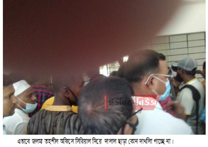 বটিয়াঘাটা প্রতিনিধি :“চালু হলো ই-নামজারী, দালাল, বাটপারদের মাথায় বাড়ি” এই স্লোগানকে বাস্তবে রূপদান দিতে বটিয়াঘাটা সহকারী কমিশনার (ভূমি) ও নির্বাহী ম্যাজিষ্ট্রেট মোঃ রাশেদুজ্জামান মঙ্গলবার বিকাল ৪ টায় স্থানীয় জলমা তহশীল অফিসে দালাল বাটপারদের বিরুদ্ধে এক ভ্রাম্যমান আদালত পরিচালনা করে দুই জন দালালকে ২ শত টাকা করে ৪ শত টাকা জরিমানা আদায় করেন। এসময় মূল দালাল সিন্ডিকেটের সদস্যরা পালিয়ে যেতে সক্ষম হয়েছে বলে জানা যায়। উক্ত ইউনিয়ন ভূমি অফিসের জনবল কম হবার সুযোগ কাজে লাগিয়ে সহকারী তহশীলদার মোঃ তৌহিদুজ্জামান তৌহিদ এর নেতৃত্ব গড়ে তুলেছেন বিশাল দালাল সিনিন্ডকেট। কোন ভূক্তভোগীর খতিয়ানে সামান্য ভিপি আছে, কিন্তু বাকী সম্পত্তি ব্যক্তিমালিকের নামে রেকর্ড রয়েছে সে ক্ষেত্রে দাখিলা কাটা উর্ধ্বতন কতৃপক্ষের নাম ভাঙ্গিয়ে প্রথমে ফেরত দেয়। পরবর্তীতে দালালদের মাধ্যমে ১০ হাজার টাকা থেকে লক্ষ টাকা হাতিয়ে নিয়ে দাখিলা বইতে সরকারী রাজস্ব খাতে ৫ শত থেকে ৫ হাজার টাকা লেখে। আবার সাধারণ ভূক্তভোগী সকাল ৯ টা থেকে সিরিয়াল দিয়ে ২ থেকে ৫ দিন পর্যন্ত না খেয়ে দাড়িয়ে থেকেও দাখিলা পাচ্ছে না। অপর দিকে দালালরা সকালে দিয়ে রাতে দাখিলা পেয়ে যাচ্ছে। এমন অভিযোগের ভিত্তিতে উপজেলা মহিলা ভাইস চেয়ারম্যান গত রবিবার সন্ধ্যায় সরেজমিনে জলমা তহশীল অফিসে যায় এবং সত্যতা পেয়ে সহকারী কমিশনার (ভূমি) সহ সংশ্লিষ্ট কর্তৃপক্ষকে অবগত করেন। উর্ধ্বতন কর্তৃপক্ষ মৌখিক অভিযোগ আমলে নিয়ে গতকাল মঙ্গলবার সহকারী কমিশনার (ভূমি) ও নির্বাহী ম্যাজিষ্ট্রেট মোঃ রাশেদুজ্জামান উক্ত ভ্রাম্যমান আদালত পরিচালনা করেন বলে সংশ্লিষ্ট সূত্র জানায়। এব্যাপারে উপজেলা মহিলা ভাইস চেয়ারম্যান চঞ্চলা মন্ডল- কে জিজ্ঞাসা করলে এ প্রেিতিবদকে জানান, জলমা তহশীল অফিসে চরম দূর্ণীতি হচ্ছে। দালাল ছাড়া গেলে দুই টাকা শতকের দাখিলা শতক ২০ টাকা করে নিচ্ছে। যদি খতিয়ান ভিপি থাকে তাহলে তো আর কোন কথা নেই। সে ভূক্তভোগী দালালদের খপ্পরে পড়ে একেবারে সর্বশান্ত হয়ে যাচ্ছে। আমি কর্তৃপক্ষকে মৌখিকভাবে এ ব্যাপারে অবগত করেছি।