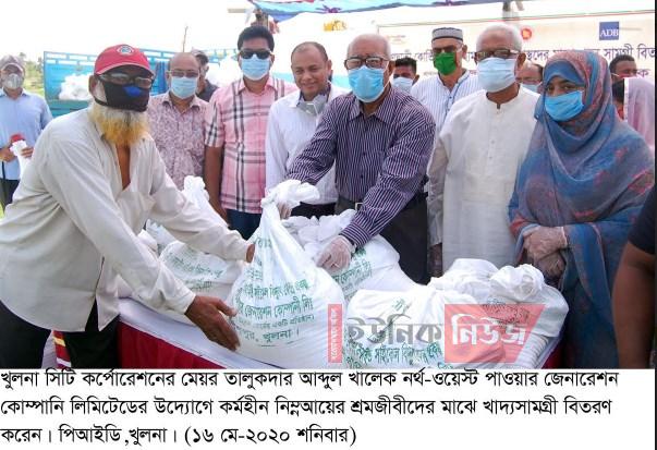 খুলনা অফিস : নর্থ-ওয়েস্ট পাওয়ার জেনারেশন কোম্পানি লিমিটেডের উদ্যোগে করোনাভাইরাস (কোভিড-১৯) প্রতিরোধে আজ (শনিবার) সকালে খালিশপুর নিজস্ব চত্বরে সাতশত ২৫ কর্মহীন নিম্নআয়ের শ্রমজীবী, অসহায়, দুস্থ ও হতদরিদ্রদের মাঝে ১০ কেজি করে চালসহ ডাল, আলু, তেল, চিনি, পেঁয়াজ নিত্যপ্রয়োজনীয় সামগ্রী বিতরণ করা হয়। খুলনা সিটি কর্পোরেশনের মেয়র তালুকদার আব্দুল খালেক এসব খাদ্যসামগ্রী বিতরণ করেন।