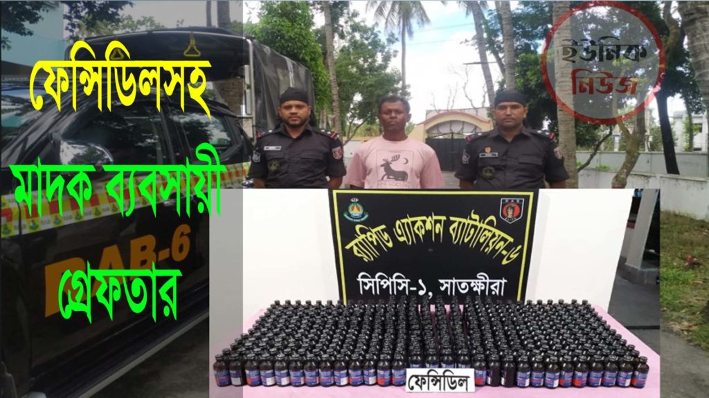 খুলনা অফিস : সাতক্ষীরা জেলার সদর থানা এলাকা থেকে র্যাব-৬, (সাতক্ষীরা ক্যাম্প) গত ১৫ জুলাই শুক্রবার ৩৮২ বোতল ফেন্সিডিলসহ মোঃ গোলাম মোস্তফা (৬০) নামের এক মাদক ব্যবসায়ীকে আটক করেছে। র্যাব-৬, (সাতক্ষীরা ক্যাম্প) এর একটি আভিযানিক দল গোপন সংবাদের মাধ্যমে জানতে পারে যে, সাতক্ষীরা জেলার সদর থানা এলাকায় কতিপয় ব্যক্তি মাদকদ্রব্য ক্রয়-বিক্রয়ের জন্য অবস্থান করছে। প্রাপ্ত সংবাদের ভিত্তিতে আইনানুগ ব্যবস্থা গ্রহনের লক্ষ্যে আভিযানিক দলটি একই তারিখ রাত ২৩.৩০ ঘটিকার সময় সাতক্ষীরা জেলার সদর থানাধীন ঘোনা ইউনিয়ন এলাকায় অভিযান পরিচালনা করে আসামী ১। মোঃ গোলাম মোস্তফা (৬০), থানা-সাতক্ষীরা সদর, জেলা-সাতক্ষীরা’কে গ্রেফতার করে। এ সময় উপস্থিত সাক্ষীদের সামনে গ্রেফতারকৃত আসামীর হেফাজত হতে ৩৮২ (তিনশত বিরাশি) বোতল ফেন্সিডিল উদ্ধার পূর্বক জব্দ করে।