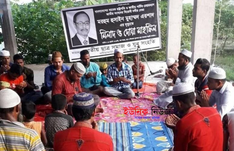 বটিয়াঘাটা প্রতিনিধি : সাবেক রাষ্ট্রপতি ও জাতীয় পার্টির চেয়ারম্যান এবং জাতীয় সংসদের বিরোধী দলীয় নেতা আলহাজ্ব হুসেইন মুহাম্মদ এরশাদের মৃত্যুতে বটিয়াঘাটা উপজেলার যুব সংহতির ও জাতীয় ছাত্র-সমাজ উদ্দ্যোগে বুধবার বাদ আছর কিসমত ফুলতলায় দলের অস্থায়ী কার্যালয়ে দোয়া ও মিলাদ মাহফিল অনুষ্ঠিত হয়। এ সময় মাহফিলে অন্যান্যের মধ্যে উপস্থিত ছিলেন উপজেলা জাতীয় পার্টির সাংগঠনিক সম্পাদক মিজানুর রহমান এলাহী, উপজেলা যুব সংহতির সভাপতি অসীম মল্লিক, উপজেলা ছাত্র সমাজের সভাপতি শাওন হাওলাদার সাধারণ সম্পাদক গাজী তরিকুল ইসলাম, মিলন বালা, আক্তারুল গাজী, মানস সরকার, শহিদুল গাজী, জলিল হাওলদার, শহিদুল সানা, আরোজিত মন্ডল, রফিক ,সজিব, পার্থ মন্ডল, চয়ন বিশ্বাস, আবীদ হোসেন, বক্কর গাজী, বিল্লাহ শেখ, মোহাম্মদ আলী, উত্তম মন্ডল, গোবিন্দ মন্ডল, সোহাগ তরফদার, আল-আমিন প্রমুখ।