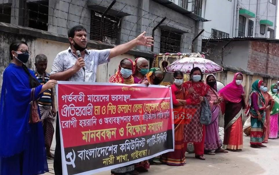 আশরাফুল ইসলাম, গাইবান্ধাঃ গাইবান্ধা মা ও শিশু কল্যাণ কেন্দ্র (মাতৃসদন) এ রোগী হয়রানি অব্যবস্থাপনা দুর্নীতির প্রতিবাদে বাংলাদেশের কমিউনিস্ট পার্টি নারী শাখা গাইবান্ধার উদ্যোগে মাতৃসদনের সামনে ১৭ আগস্ট সোমবার মানববন্ধন ও বিক্ষোভ সমাবেশ অনুষ্ঠিত হয়।