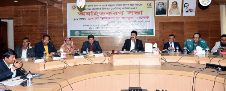 স্বাস্থ্য অধিদপ্তরের রোগ নিয়ন্ত্রণ শাখার কমিউনিকেবল ডিজিজ কন্ট্রোল অপারেশন প্ল্যানের জলাতঙ্ক রোগ নির্মূল কর্মসূচির আওতায় পর্যায়ক্রমে দেশের সকল জেলায় ৩ রাউন্ড এমডিভি কার্যক্রম বাস্তবায়ন করা হবে এবং জেলা প্রাণি সম্পদ অধিদপ্তর, সিটি কর্পোরেশনের ভেটেরিনারী দপ্তর ও স্বাস্থ্য মন্ত্রণালয় থেকে আগত শতাধিক জনবল মাঠ পর্যায়ে এ কার্যক্রম পরিচালনা করবে। কার্যক্রমের আওতায় সারাদেশে ইতোমধ্যে প্রায় ২৫ লক্ষ ৩৩ হাজার ডোজ জলাতঙ্ক প্রতিরোধী টিকা প্রদান করা হয়েছে। এরই ধারাবাহিকতায় খুলনা মহানগরী এলাকায় আগামী ১৯ থেকে ২৩ জানুয়ারি পর্যন্ত ৩য় রাউন্ড কুকুরের ঠিকাদান কর্মসূচি পরিচালিত হবে বলে সভায় জানানো হয়।